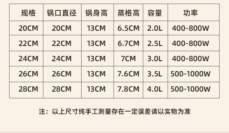 | extra thick 3.6l-steamer [suitable for 3-4 people] 26cm(特厚款3.6L-蒸笼【适合3-4人】26CM) | USD $17.64 | 999999 piece available |