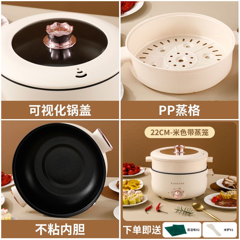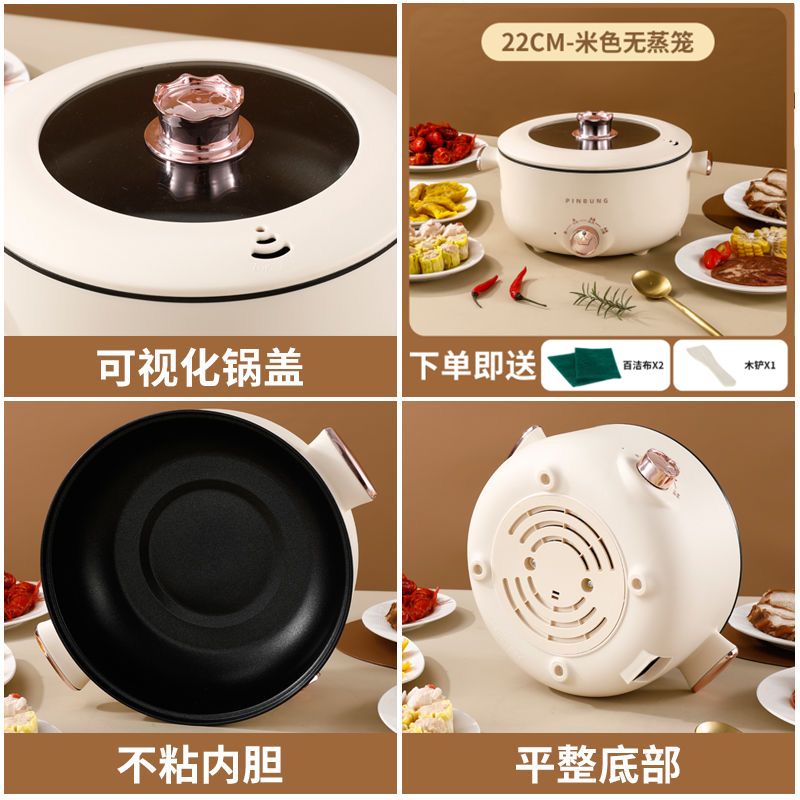 电煮锅多功能家用学生宿舍煮面小电锅电炒锅蒸煮一体不粘电热火锅