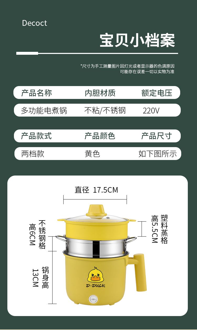 小黄鸭多功能电煮锅学生煮面个家用迷你小火锅厨房小电锅便携式