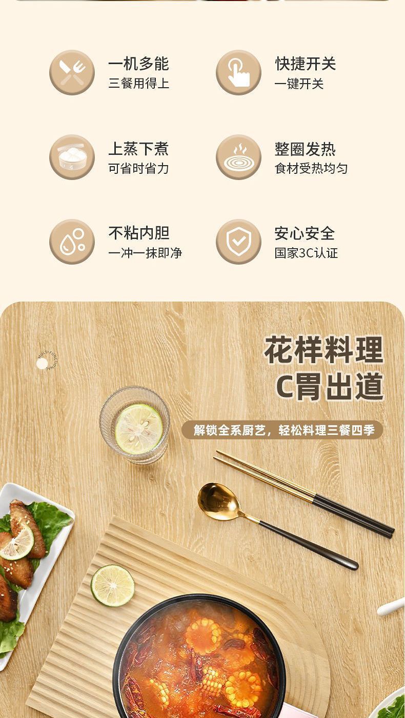 | dry burning power failure protection [extra thick: non-stick pan + steamer] new in 50 years(干烧断电保护【特厚:不粘锅+蒸笼】五十年换新) | USD $6.32 | 999999 piece available |
