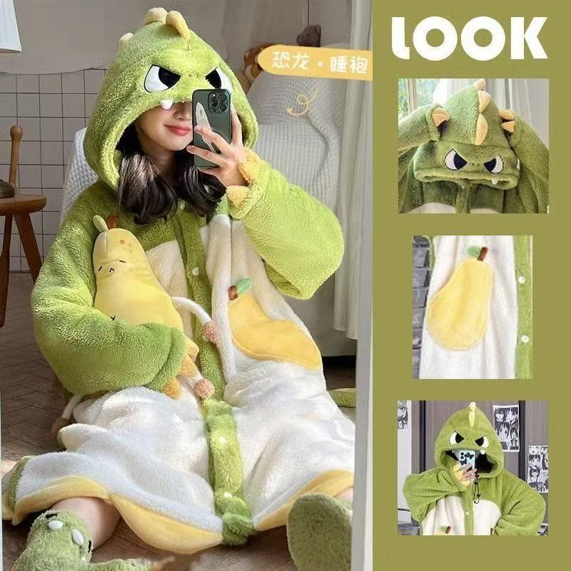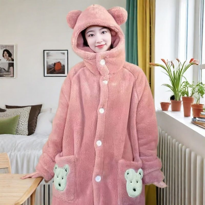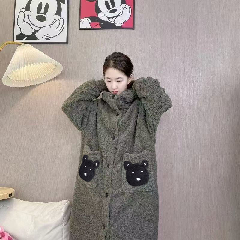 冬季睡衣女冬款珊瑚绒睡袍加绒加厚学生可外穿长款法兰绒睡裙冬天