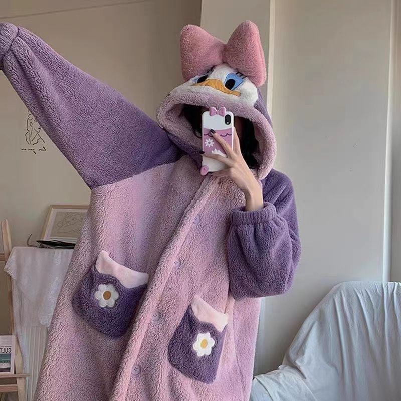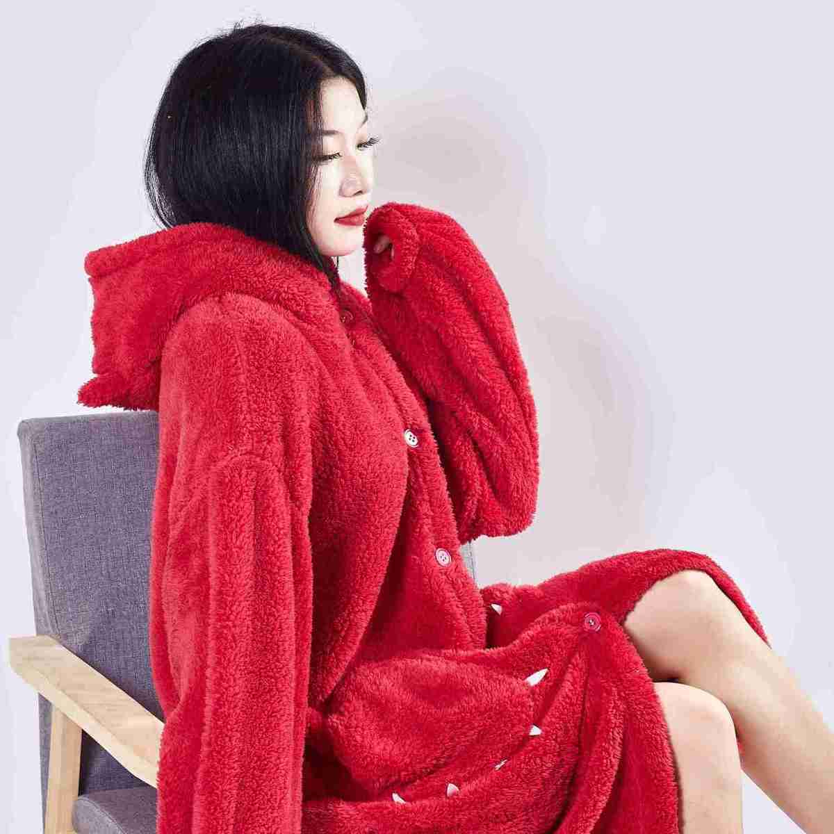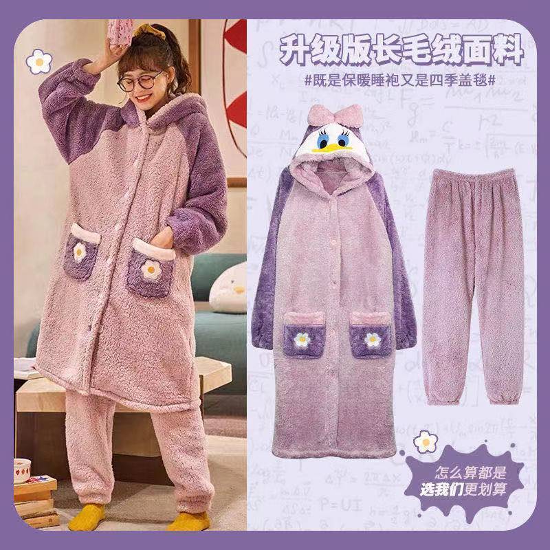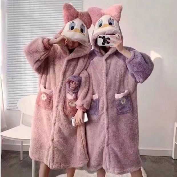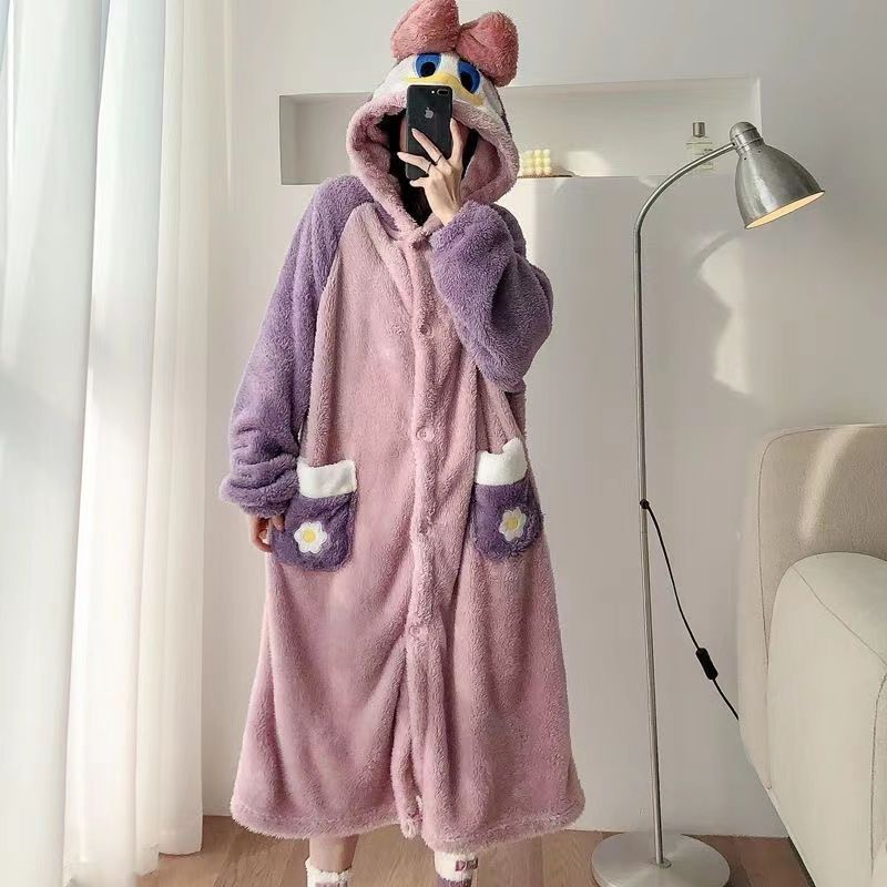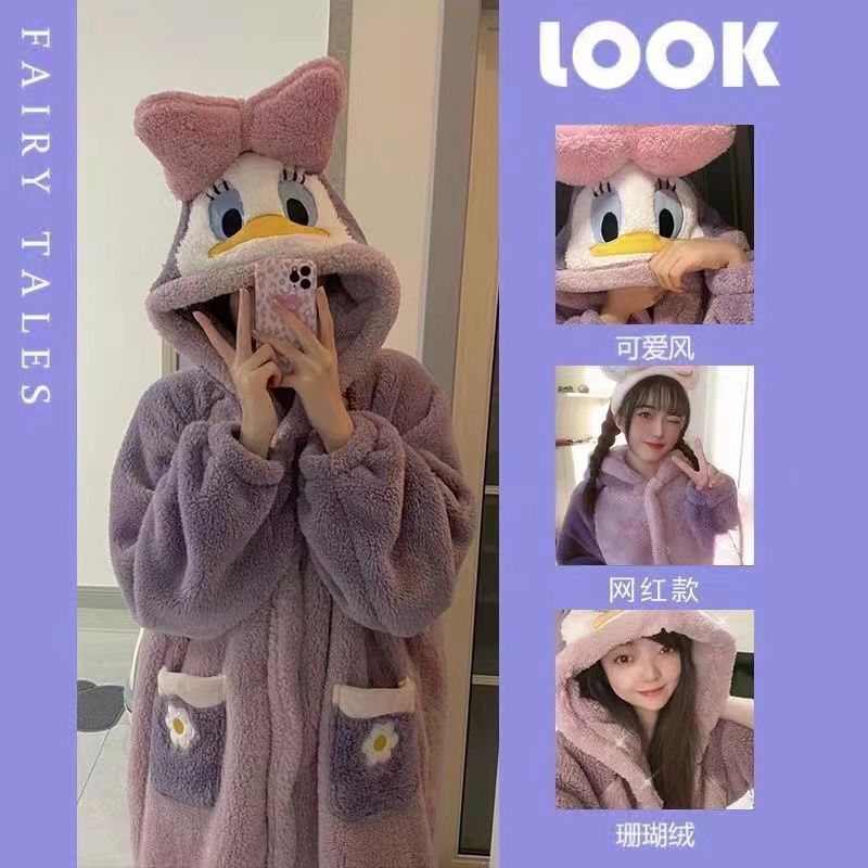 史迪仔睡衣女冬季珊瑚绒睡袍加厚加绒学生睡裙长款浴袍可外穿冬天