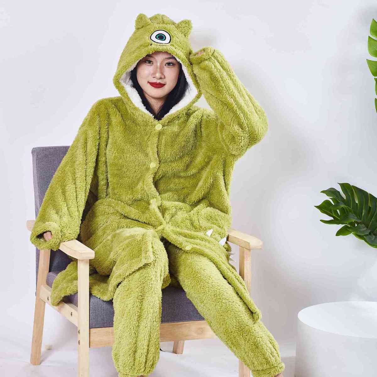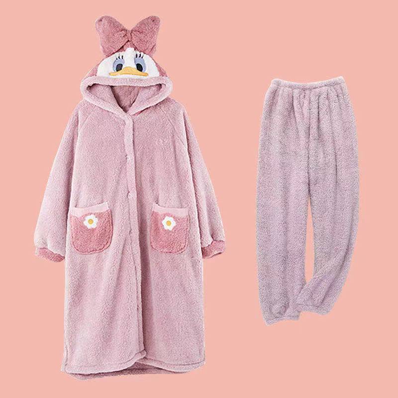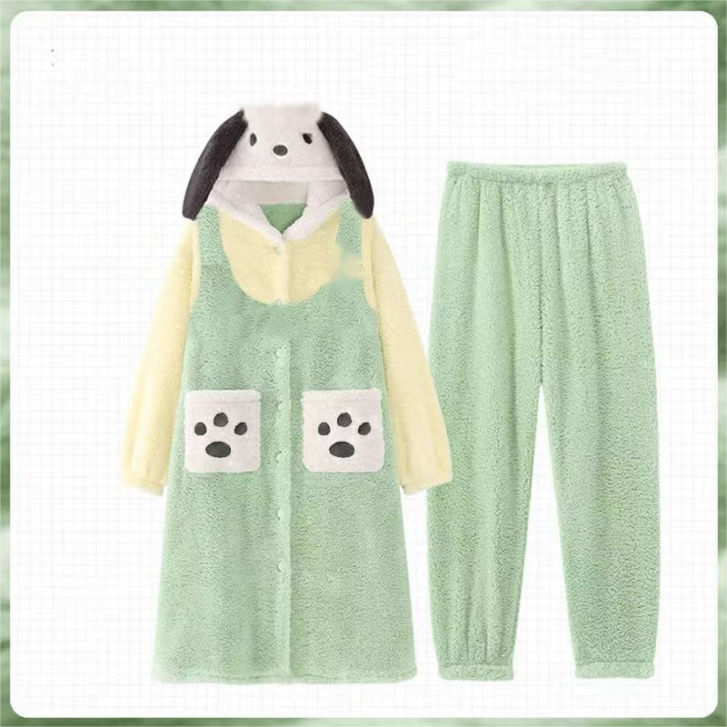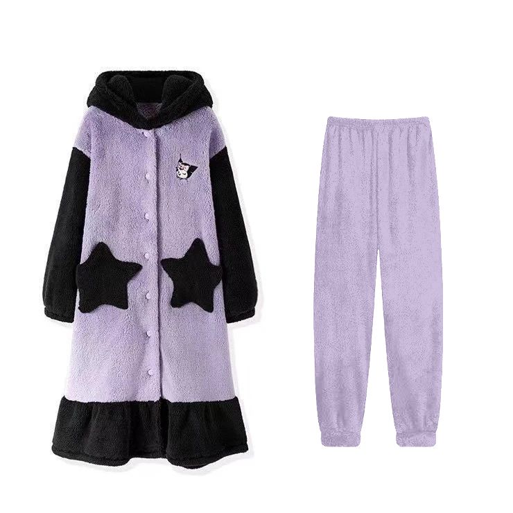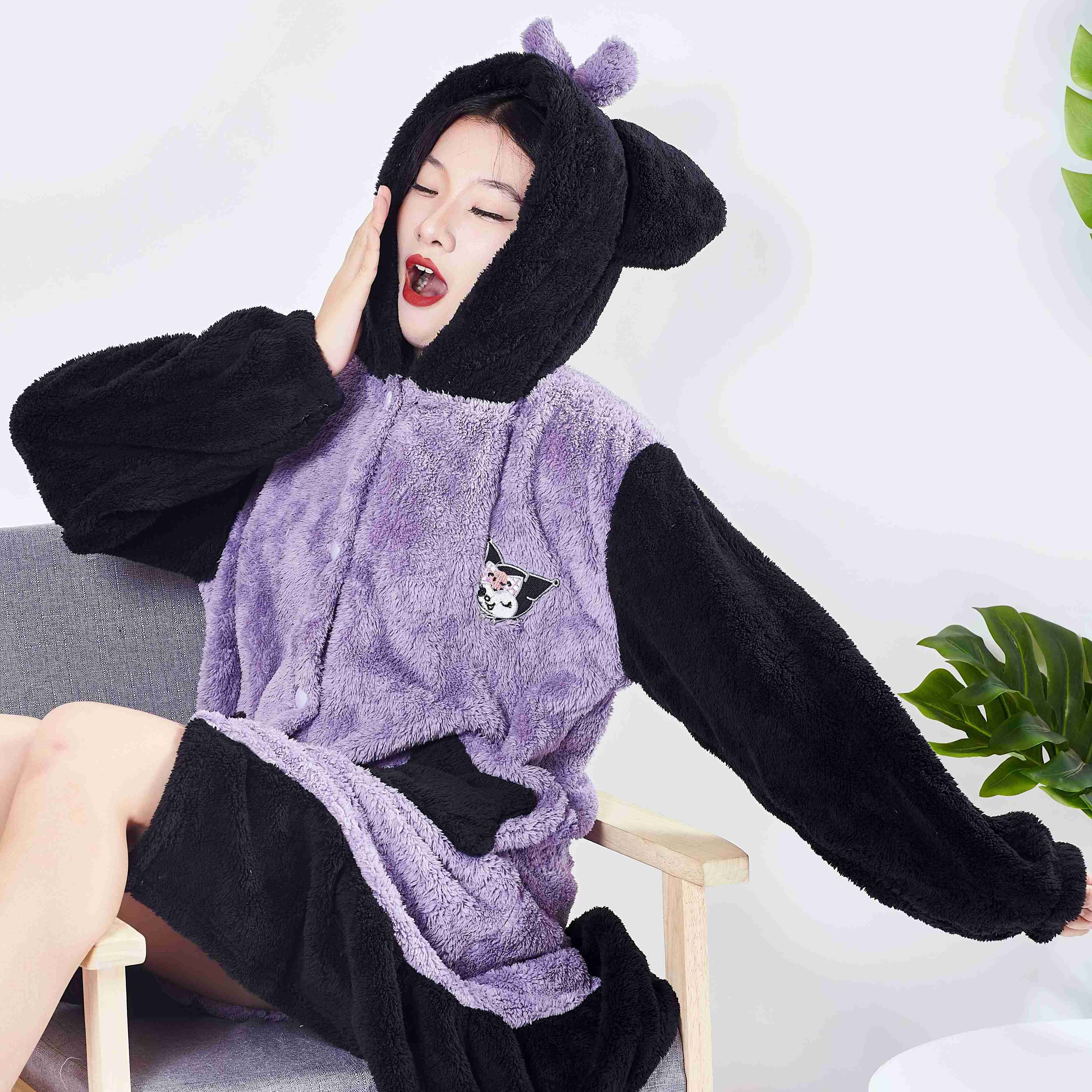 史迪仔睡衣女冬季珊瑚绒睡袍加厚加绒学生睡裙长款浴袍可外穿冬天