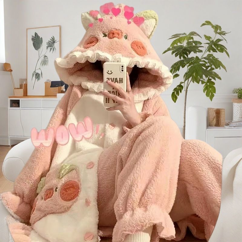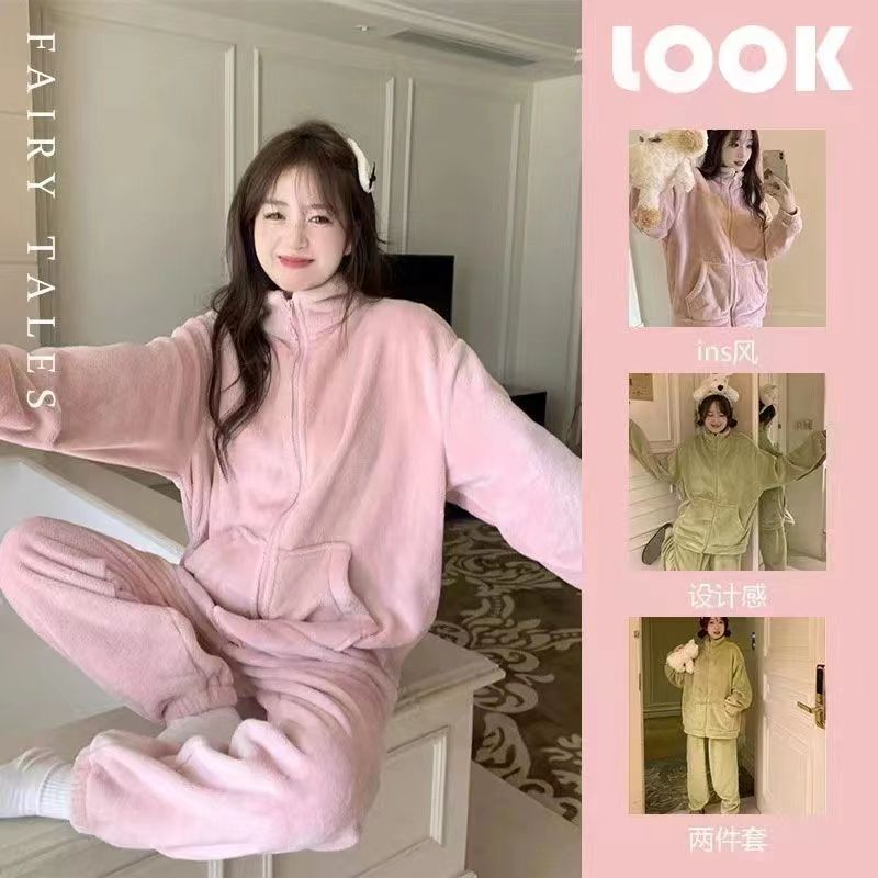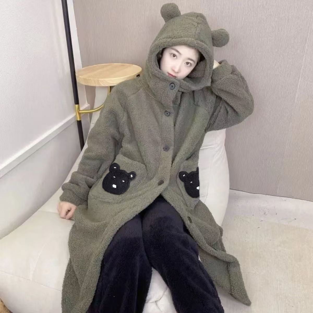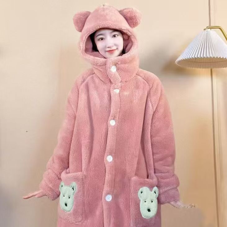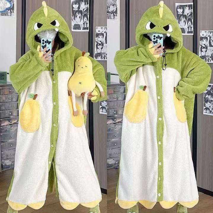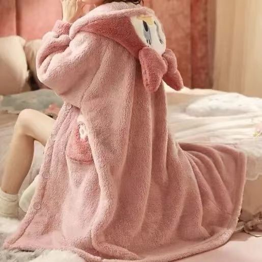 大眼仔睡衣女秋冬季可爱卡通珊瑚绒睡袍加绒加厚ins风学生可外穿