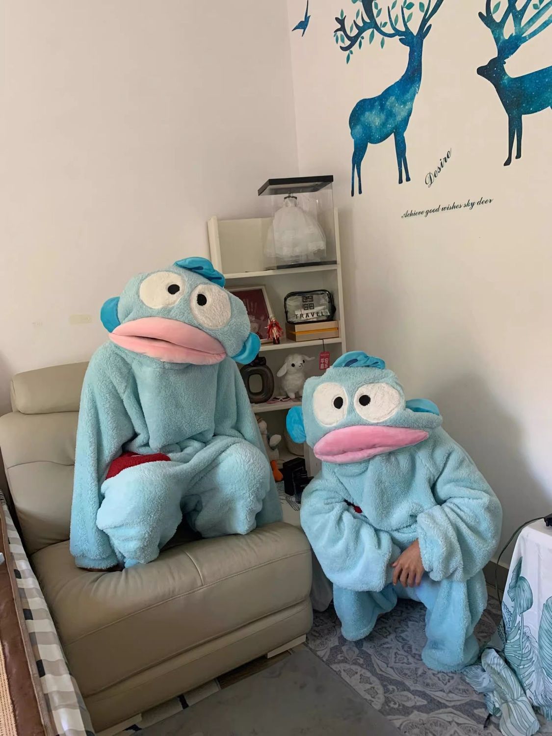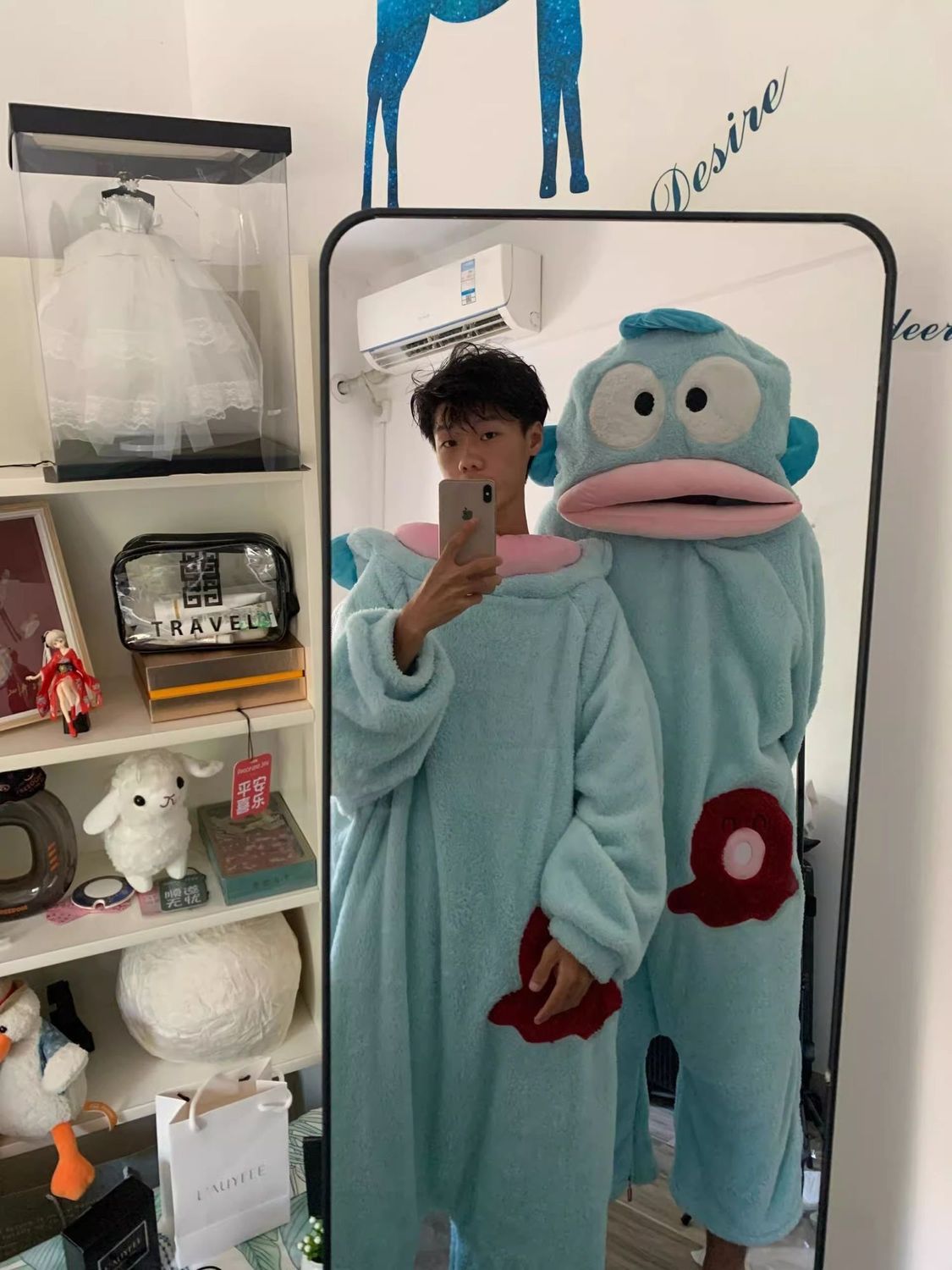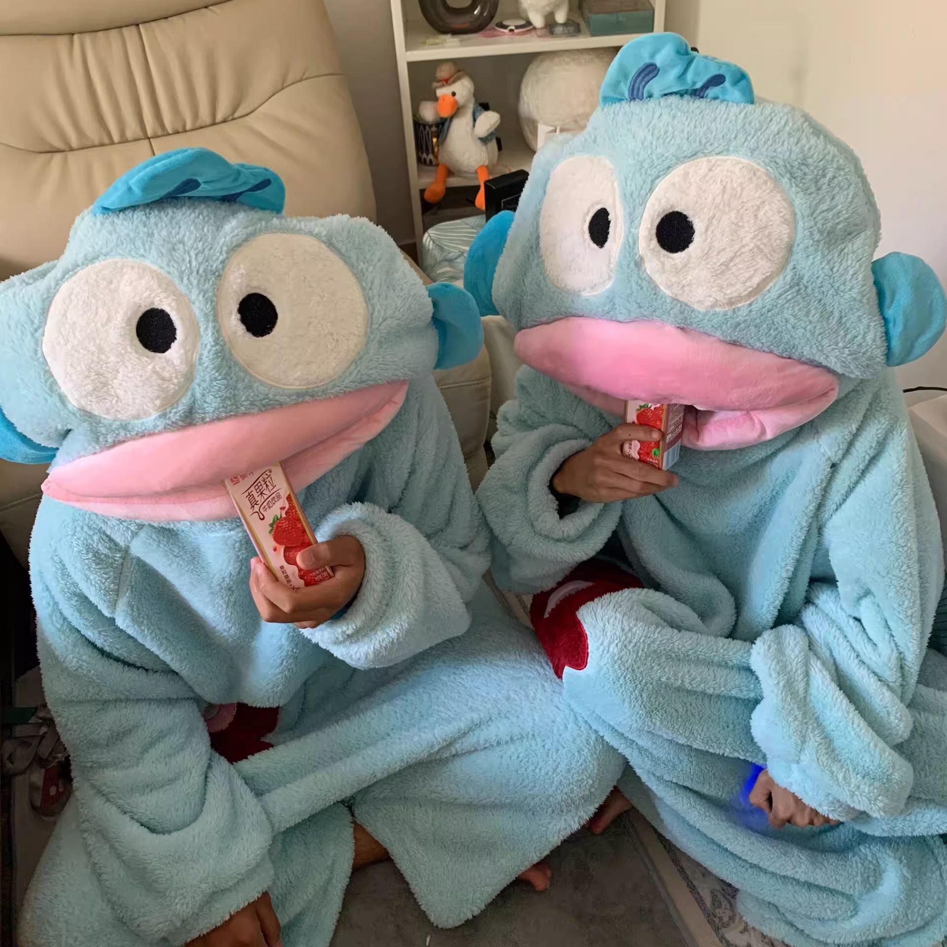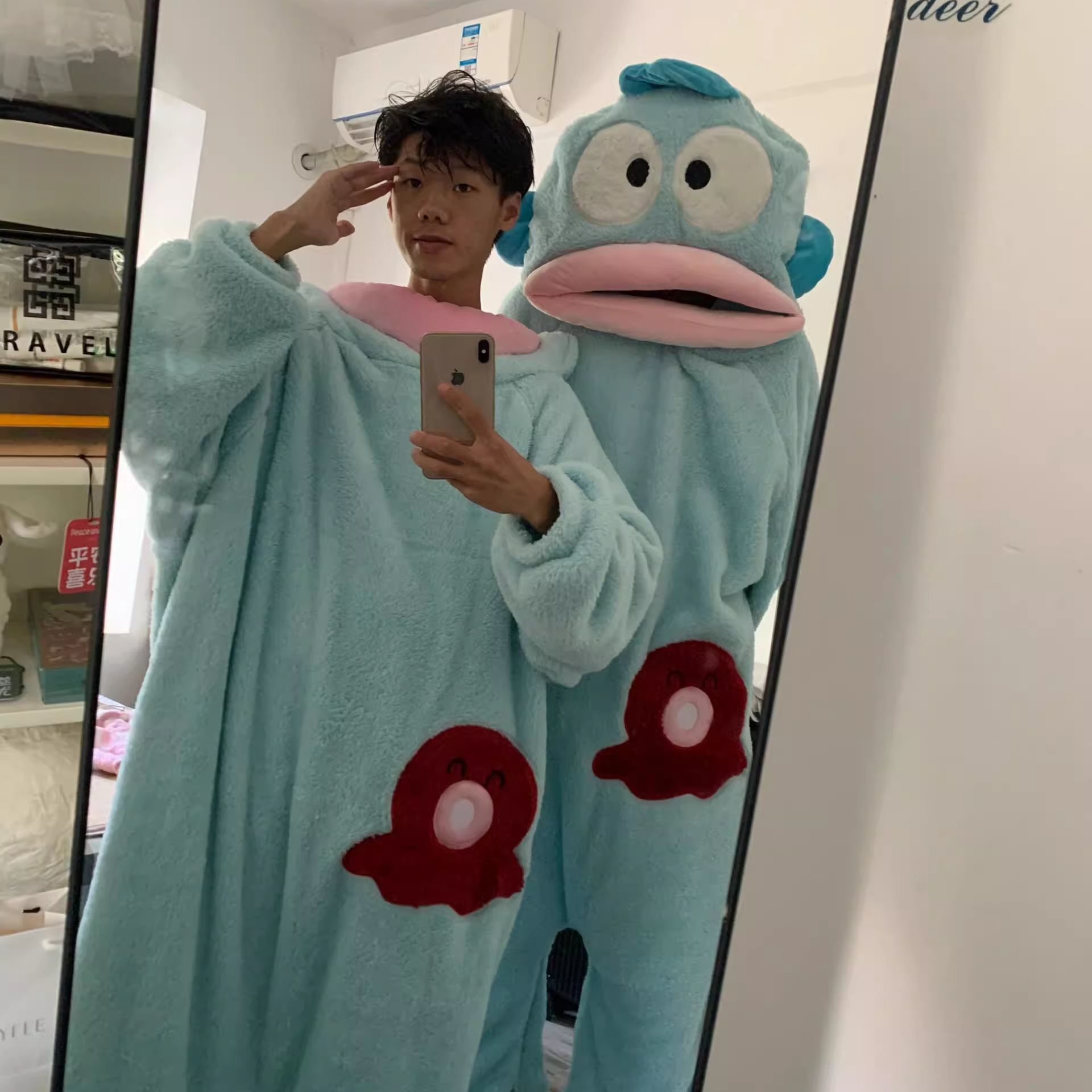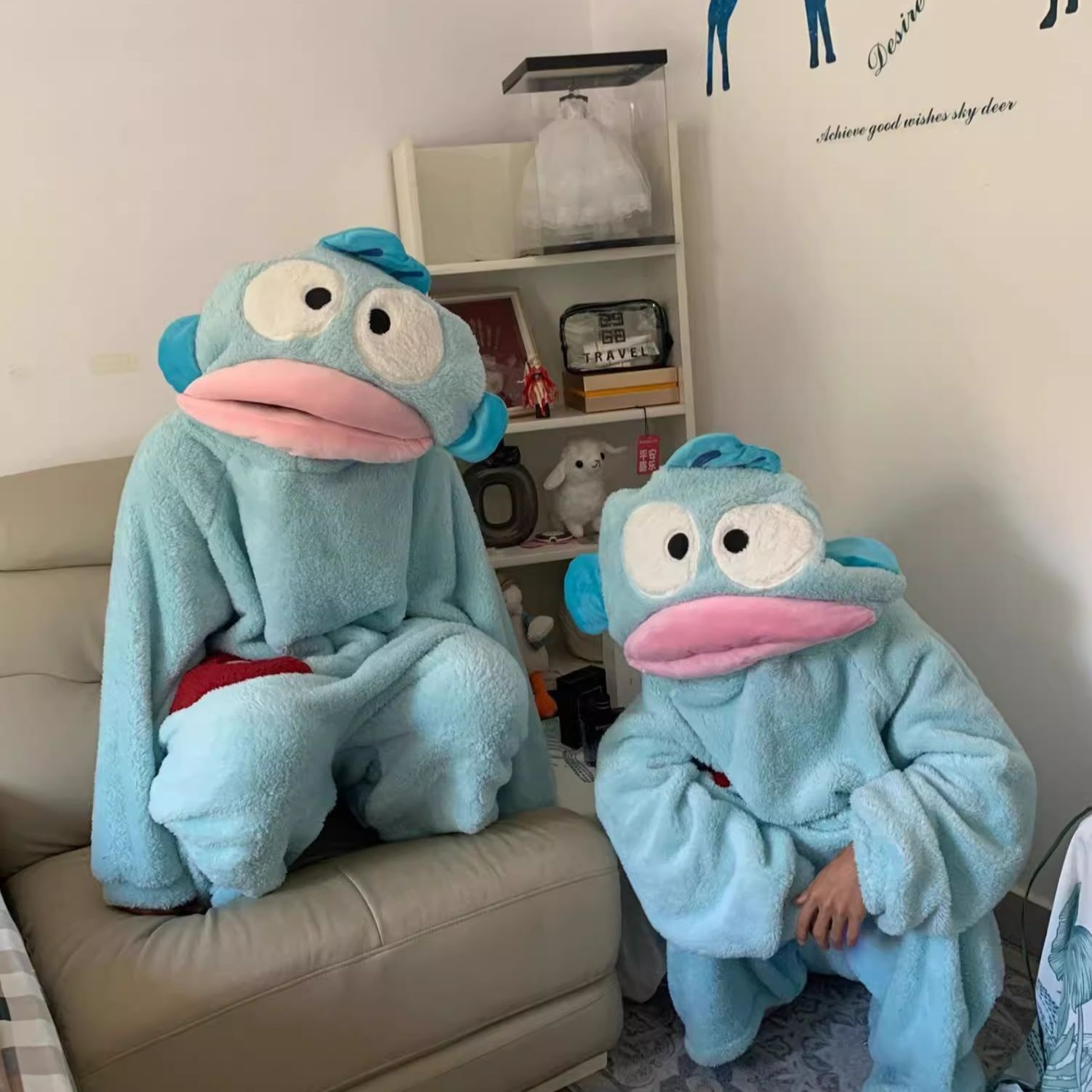 汉顿丑鱼连体睡衣女珊瑚绒加厚保暖鱼嘴睡衣冬季卡通搞怪情侣睡袍