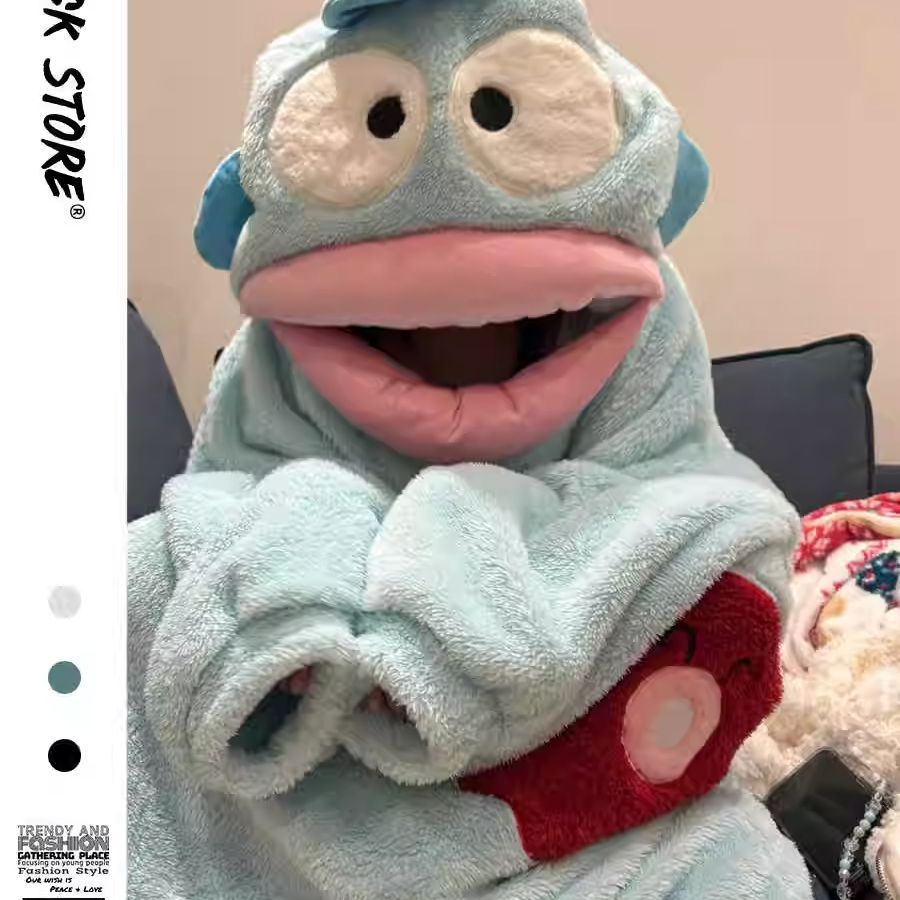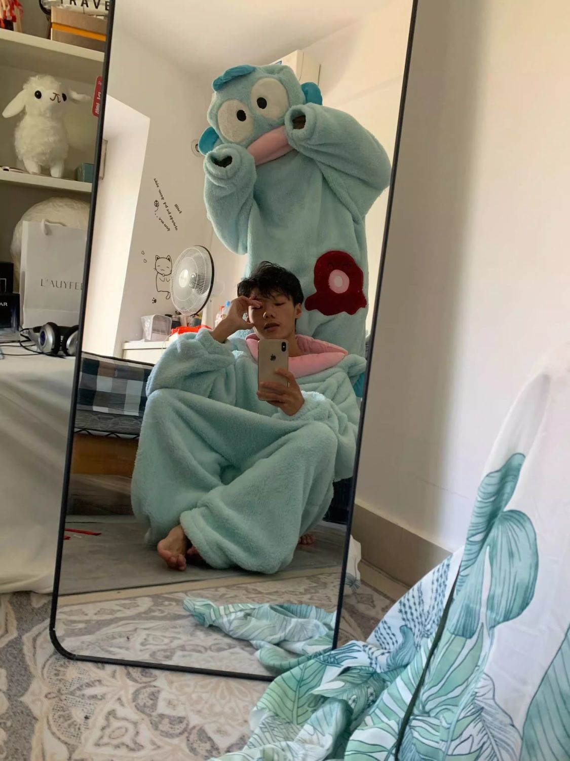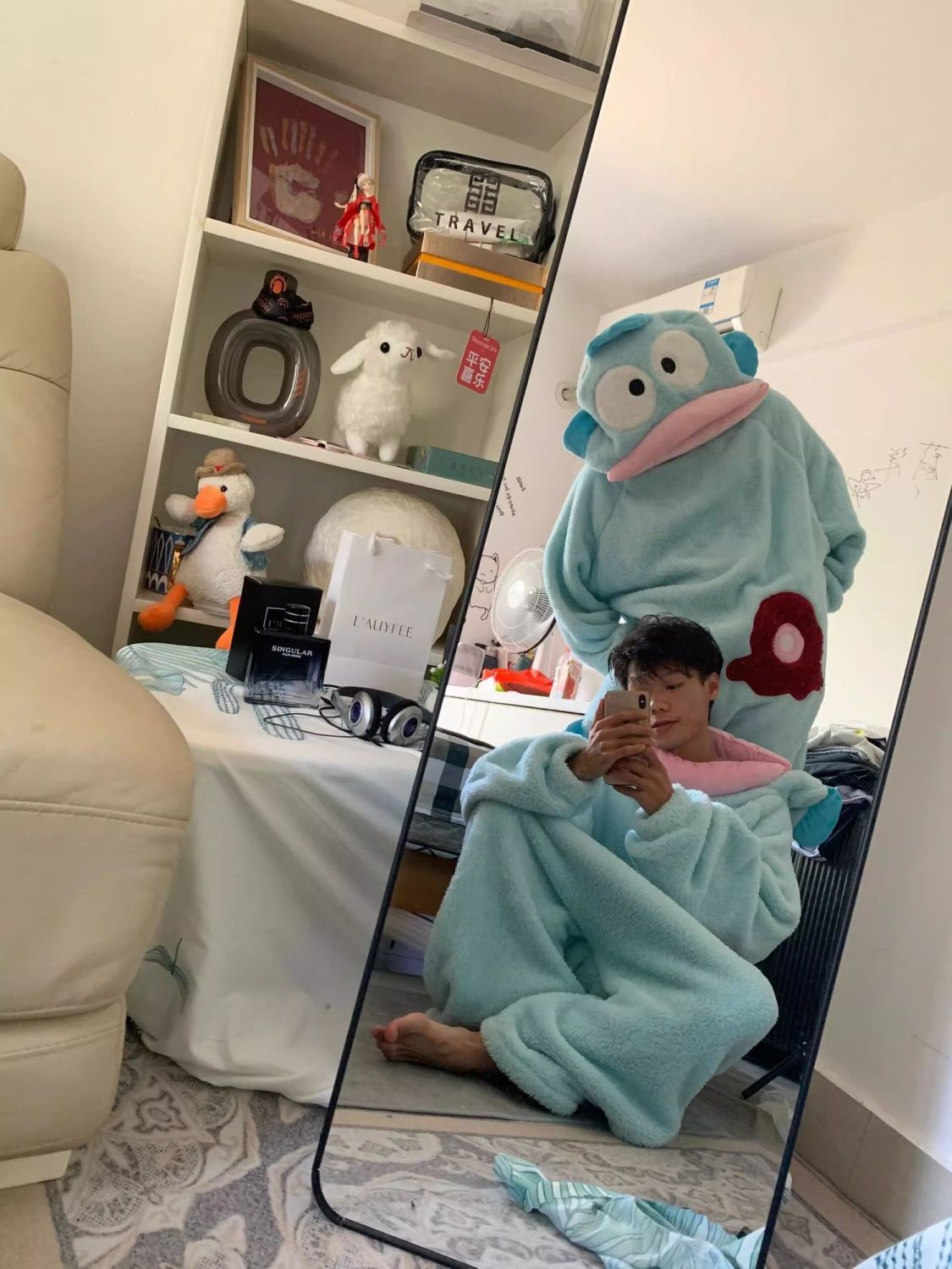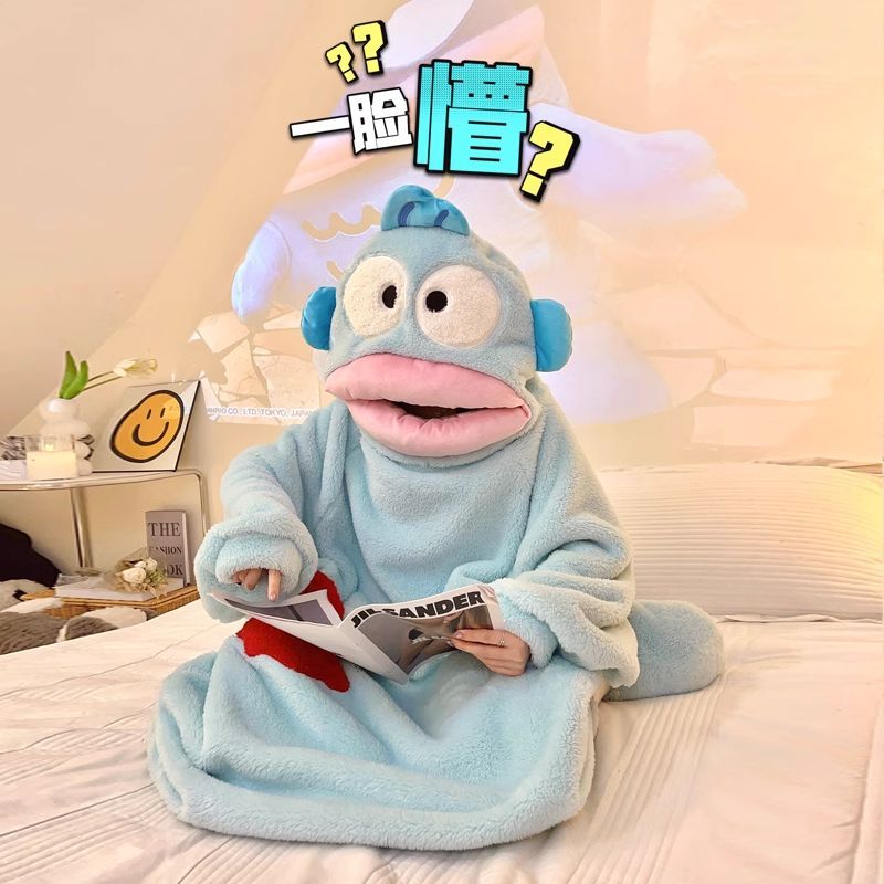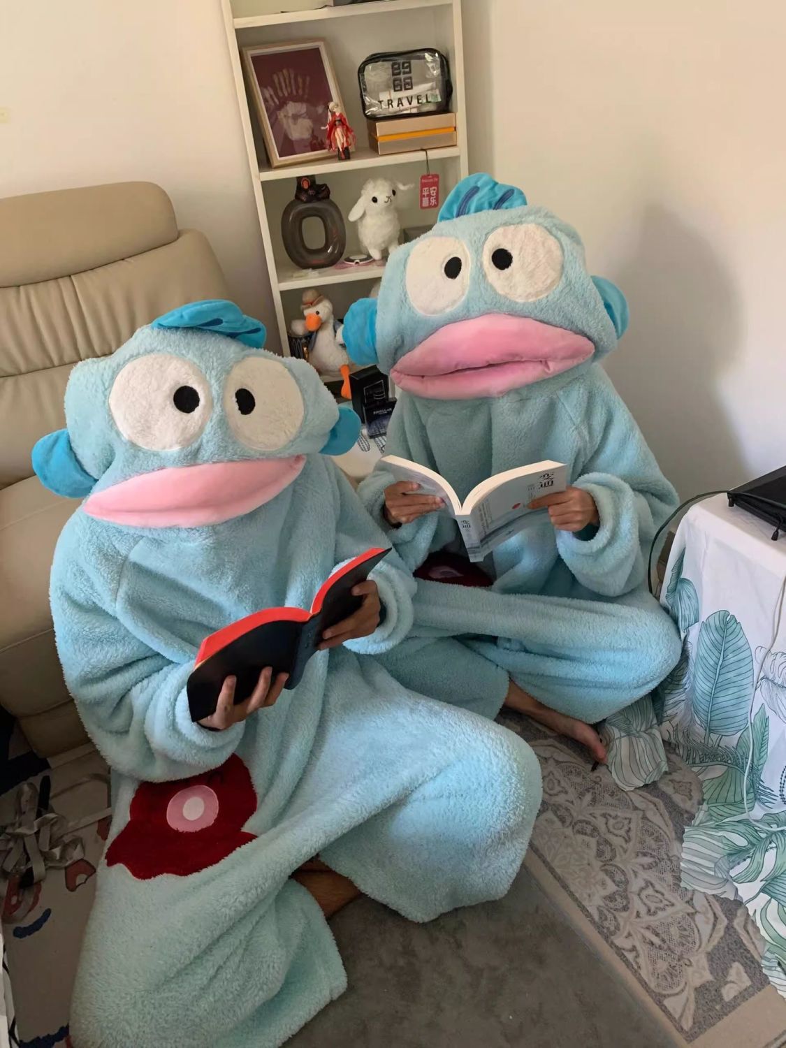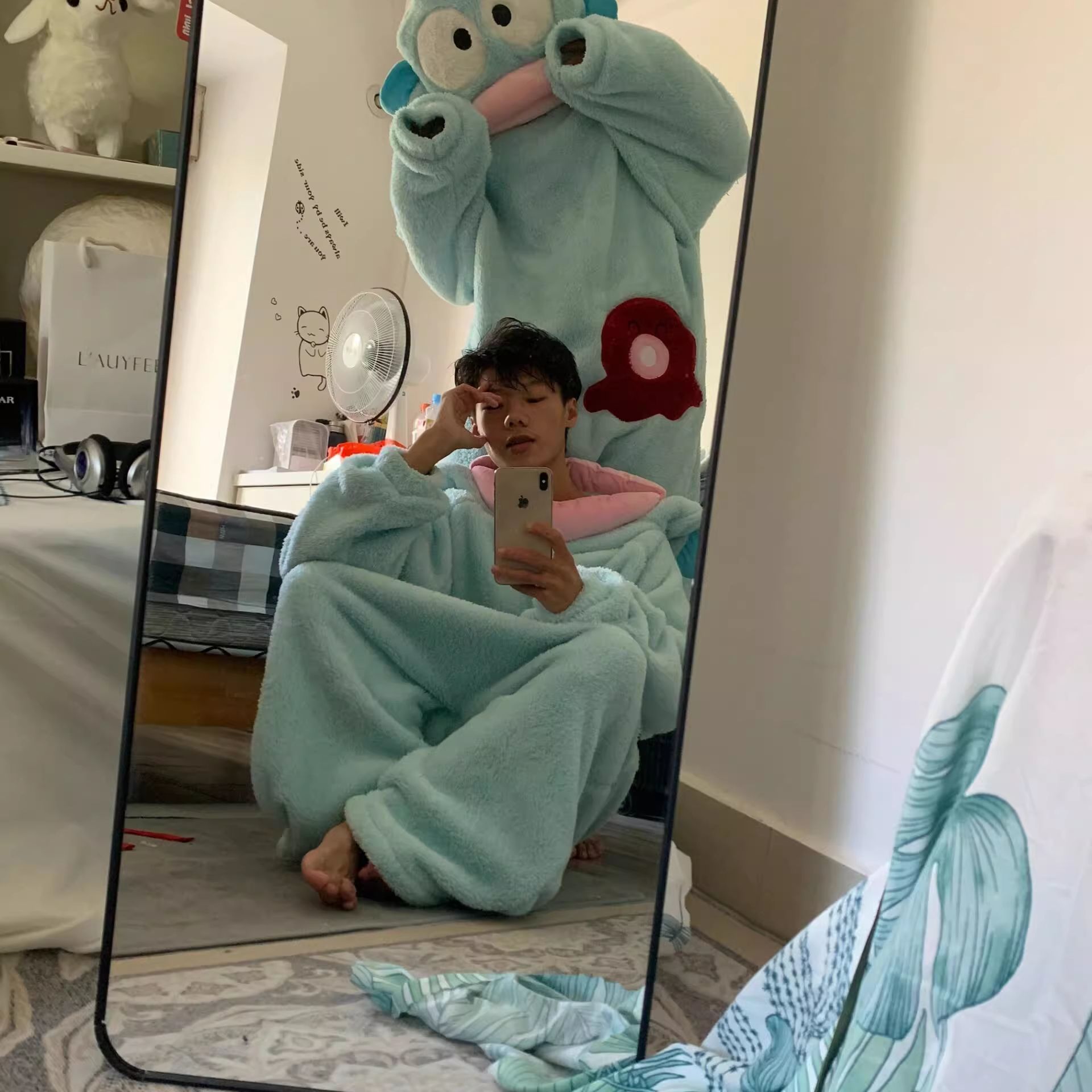 汉顿丑鱼连体睡衣女珊瑚绒加厚保暖鱼嘴睡衣冬季卡通搞怪情侣睡袍
