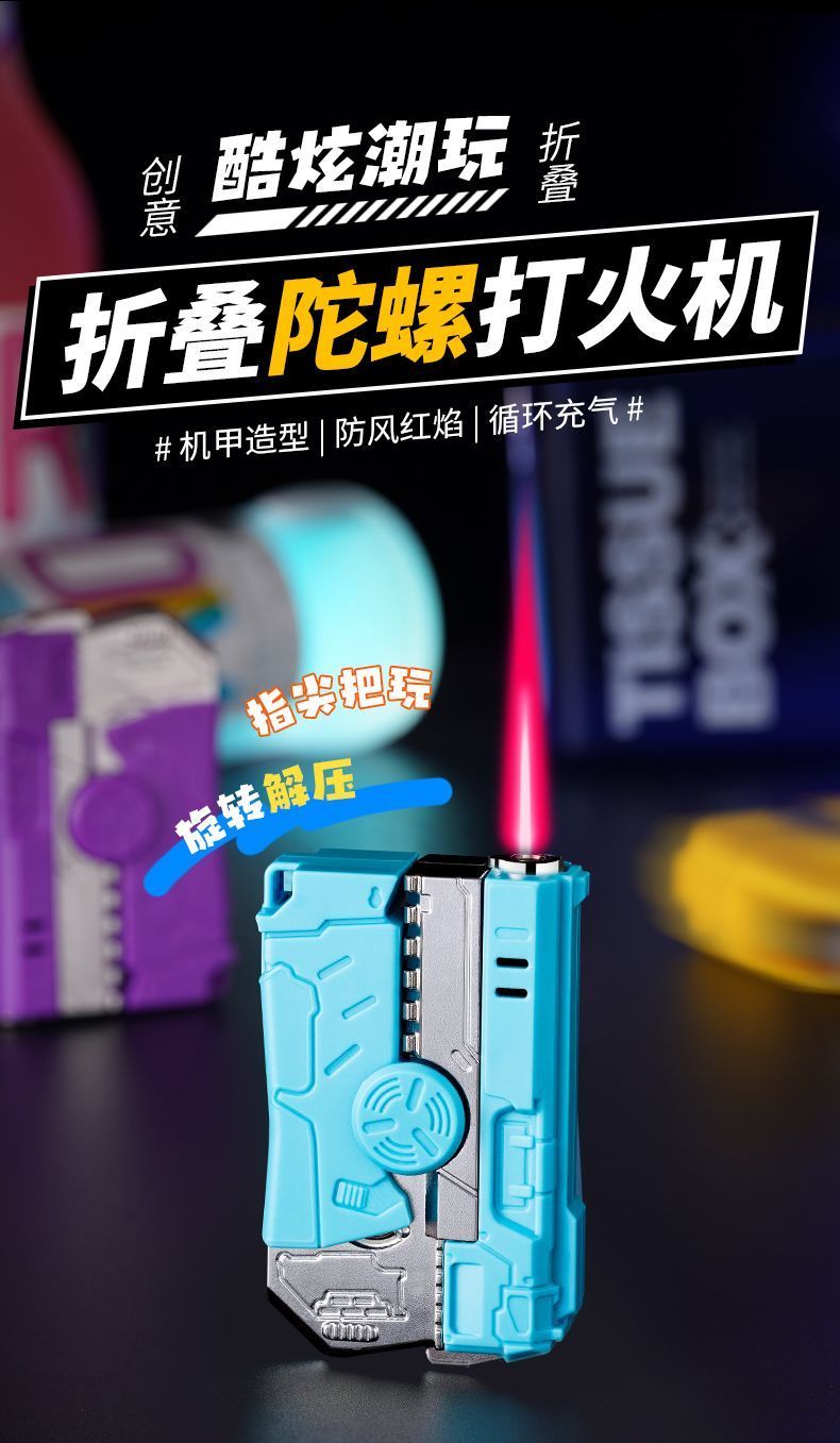 爆款创意折叠旋转陀螺充气防风打火机红色火焰送朋友礼物解压玩具
