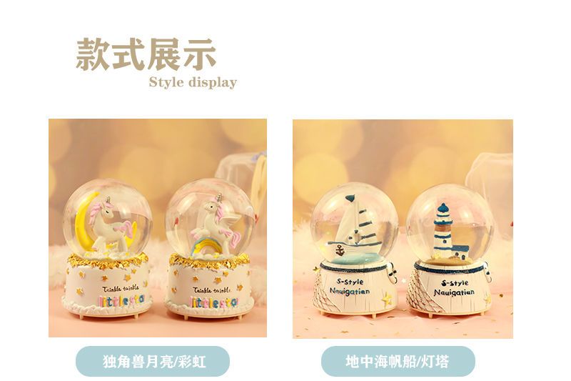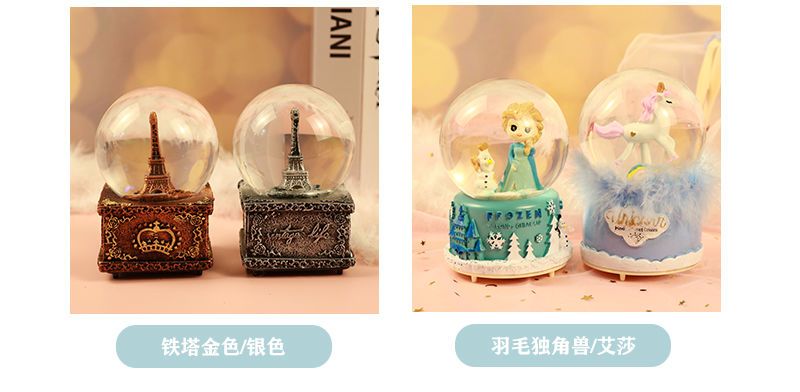 水晶球音乐盒八音盒摆件带雪花发光生日礼物女生闺蜜女孩儿童女友