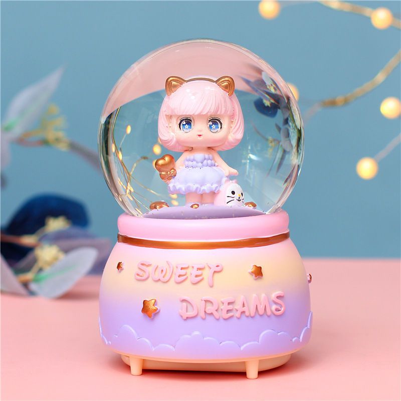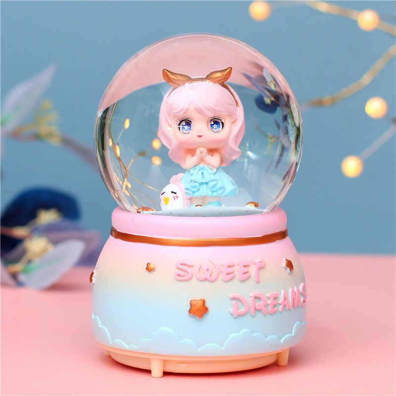 八音盒雪花水晶球音乐盒旋转发光生日礼物女闺蜜公主同学毕业送礼