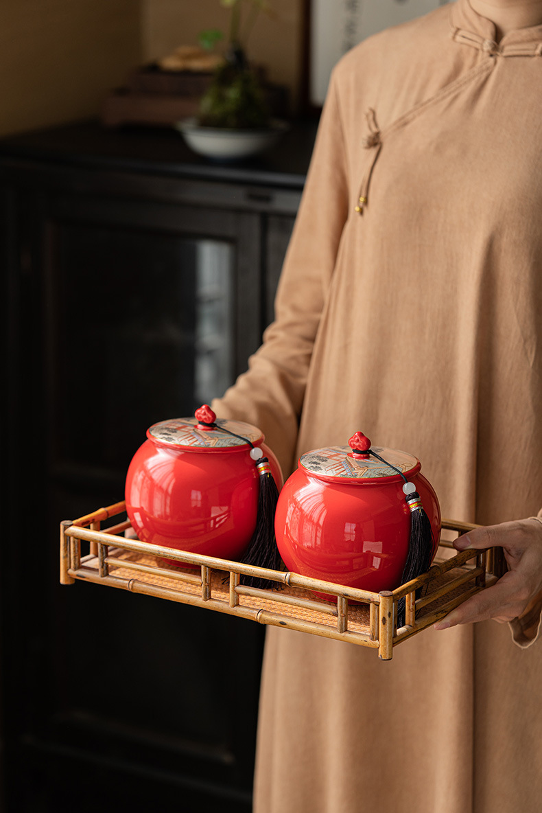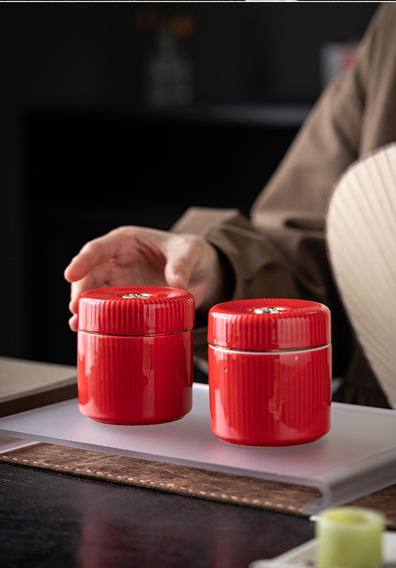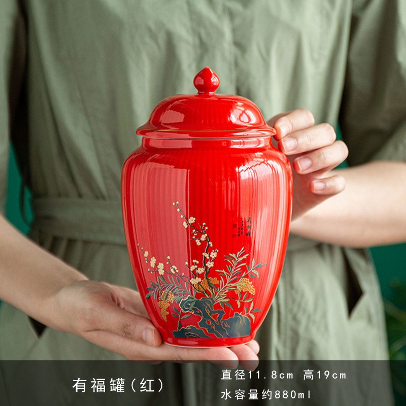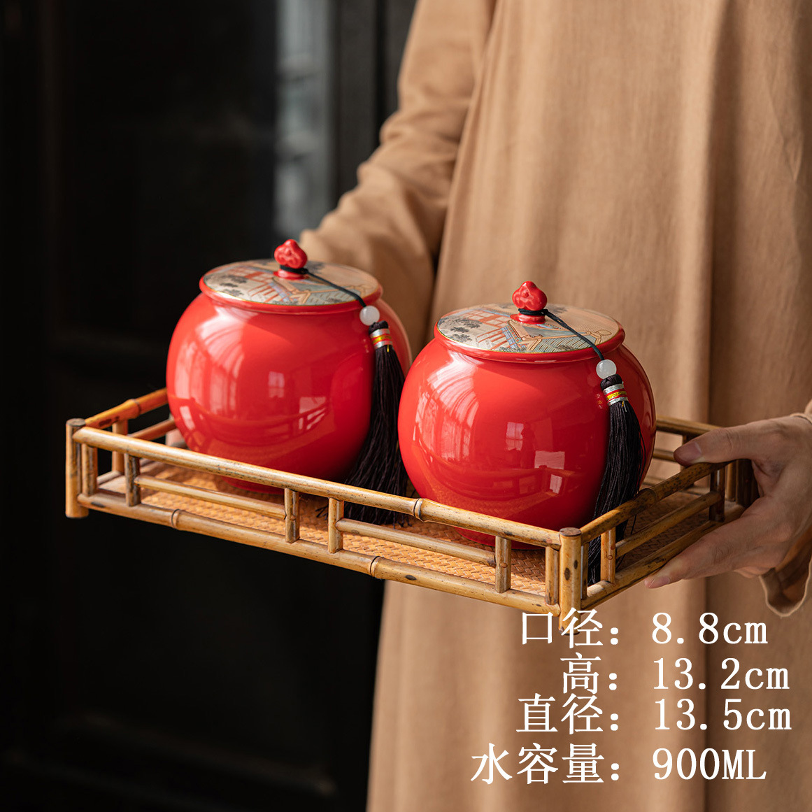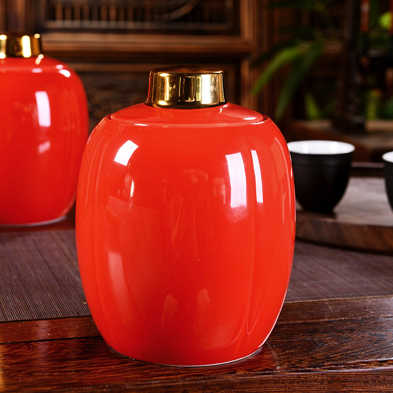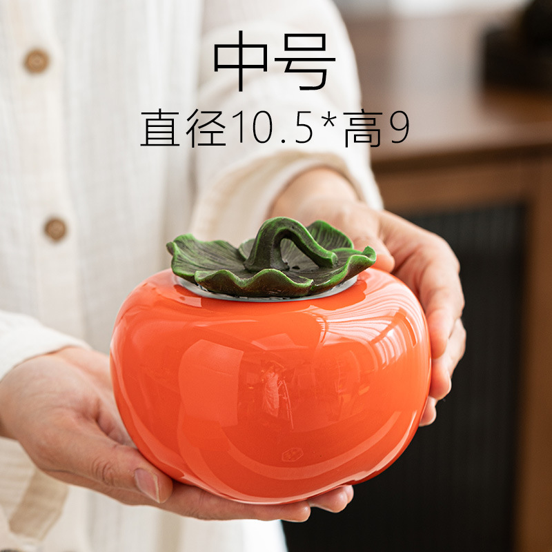 茶叶罐陶瓷密封罐通用红茶罐普洱茶茶礼中号柿子储物罐复古茶叶罐