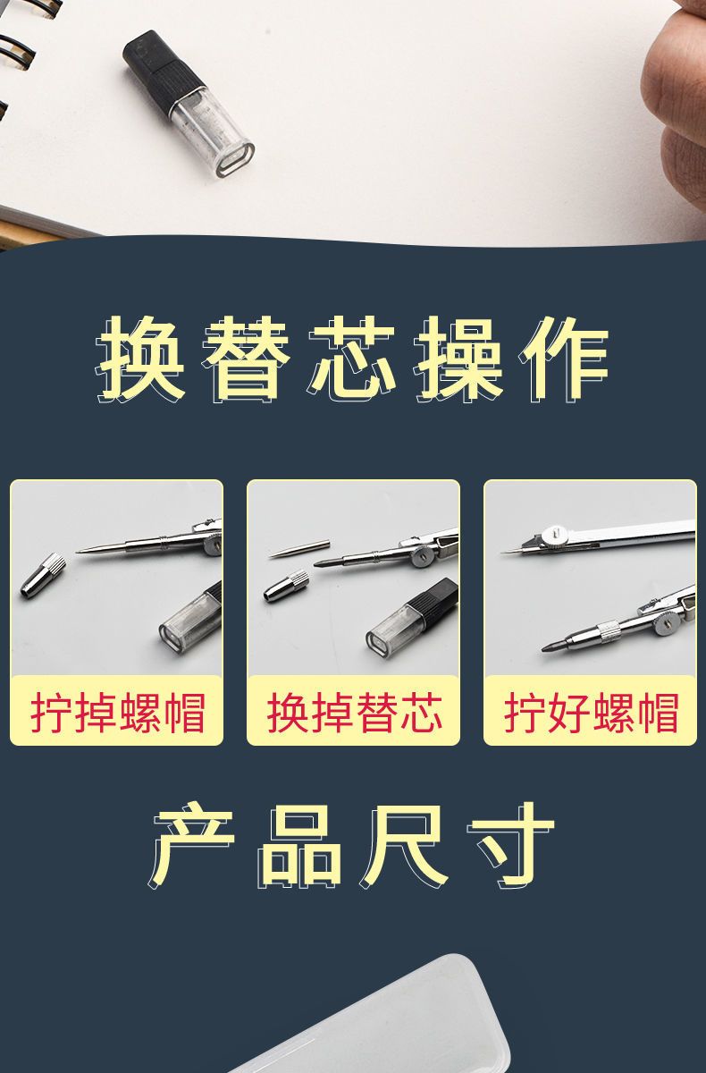 | [one set] metal compass +10 pieces pencil refill(【一套】金属圆规+10支铅芯) | USD $1.18 | 999999 piece available |