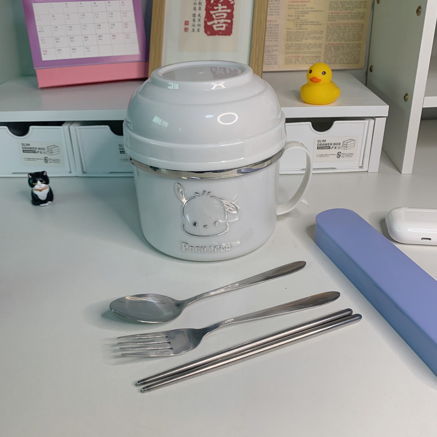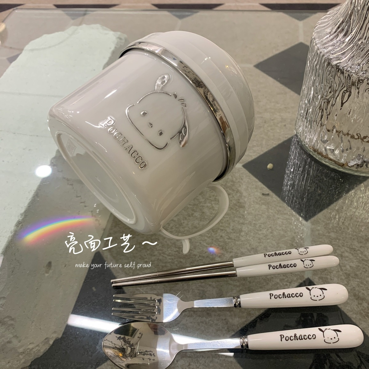 帕恰狗快餐杯学生宿舍可爱少女心大容量易清洗带盖上班族餐具套装