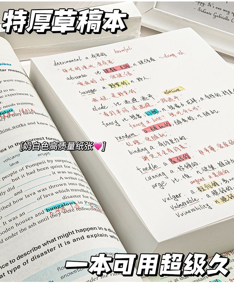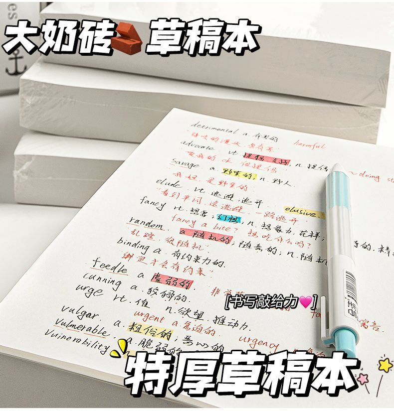 1000张ins小红书18K草稿纸可撕式巨厚草稿本空白演算纸巨厚小方砖