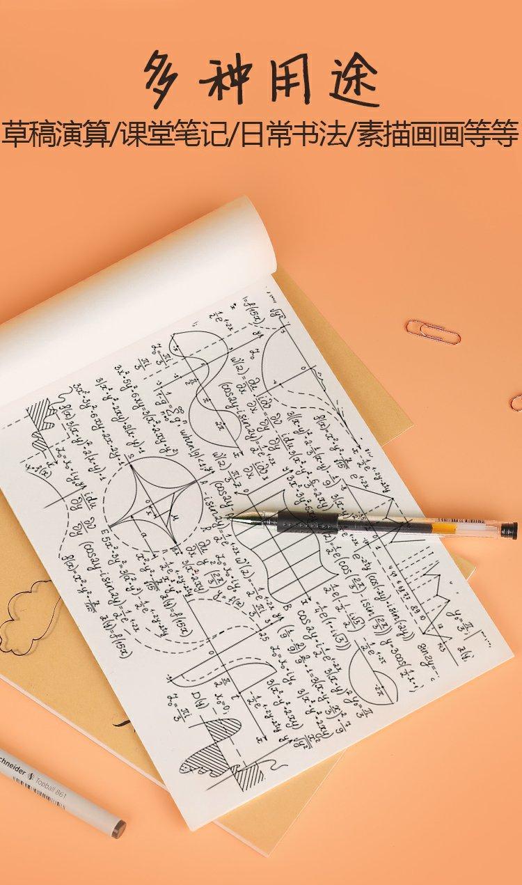 加厚草稿纸草稿本空白打草纸学生考研专用考试验算纸演算米黄护眼