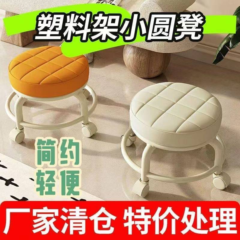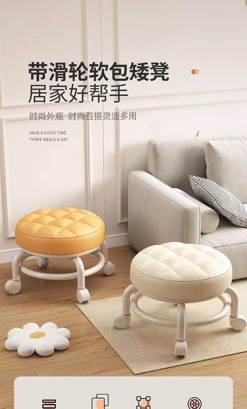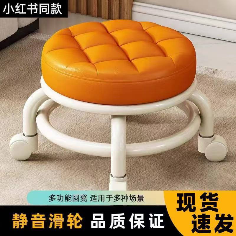 带轮小凳子带娃儿童学步登滑轮矮凳圆板凳家用可移动万向轮换鞋凳