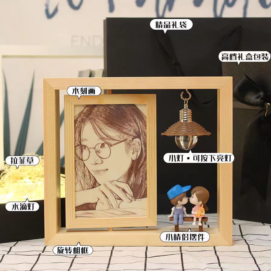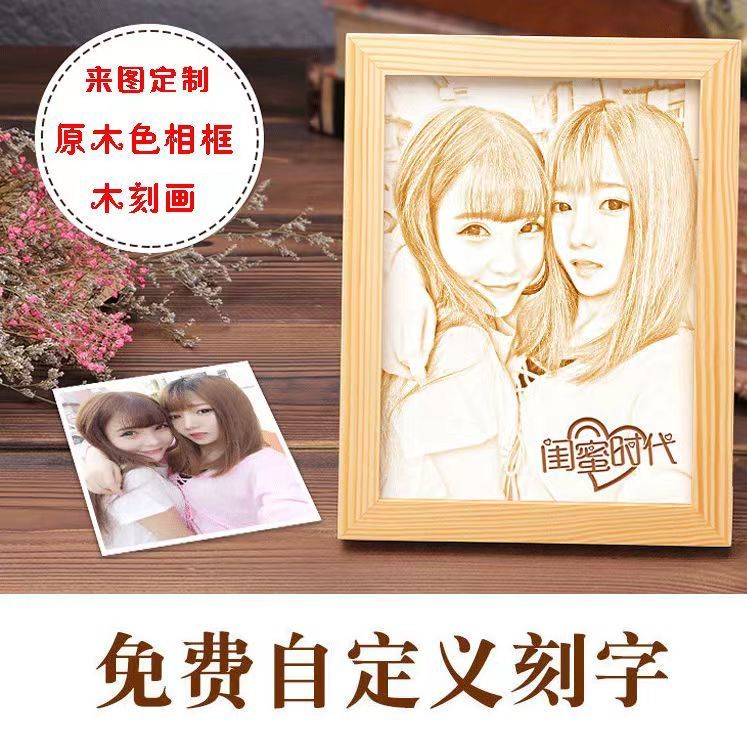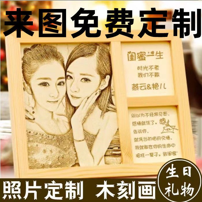 生日礼物木刻画微雕创意走心礼品来图免费定制送情侣送长辈送闺蜜