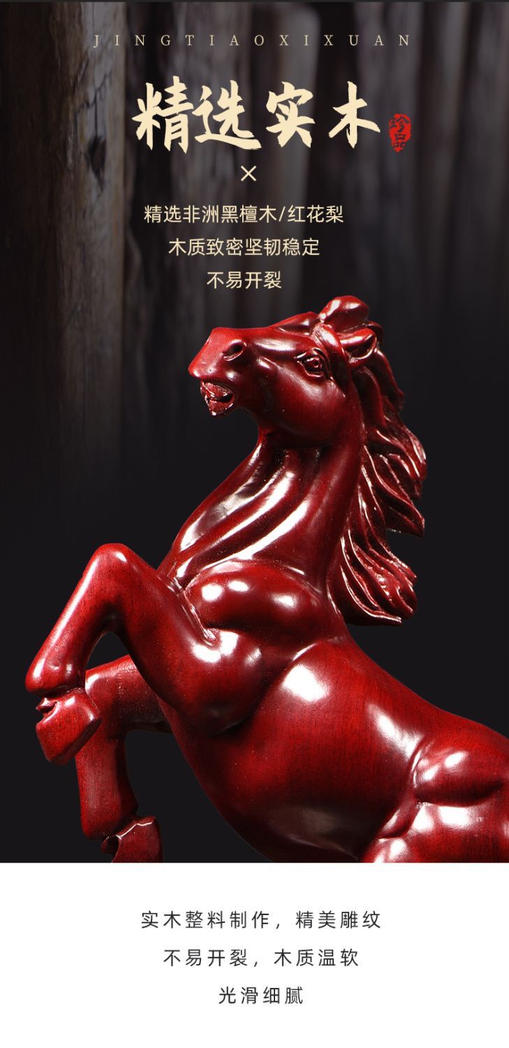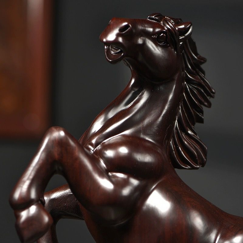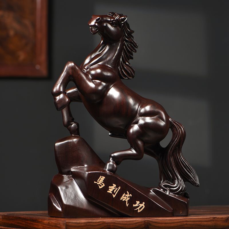 黑檀木雕马摆件实木生肖马到成功工艺礼品乔迁开业送礼客厅装饰品