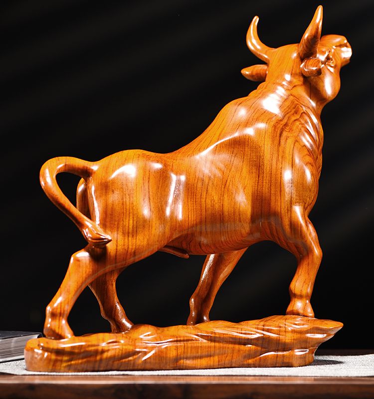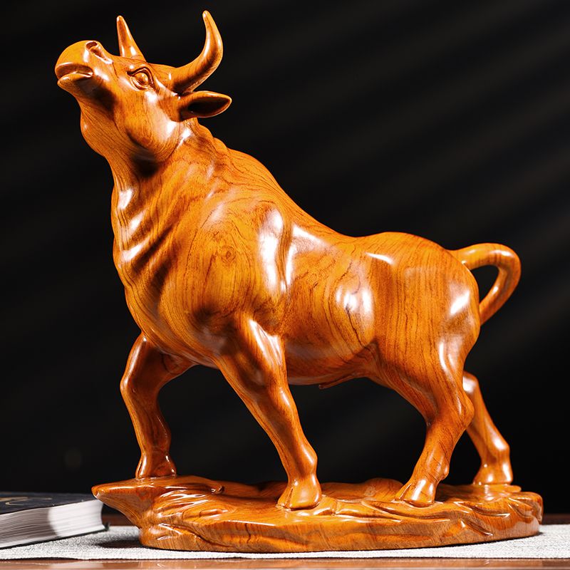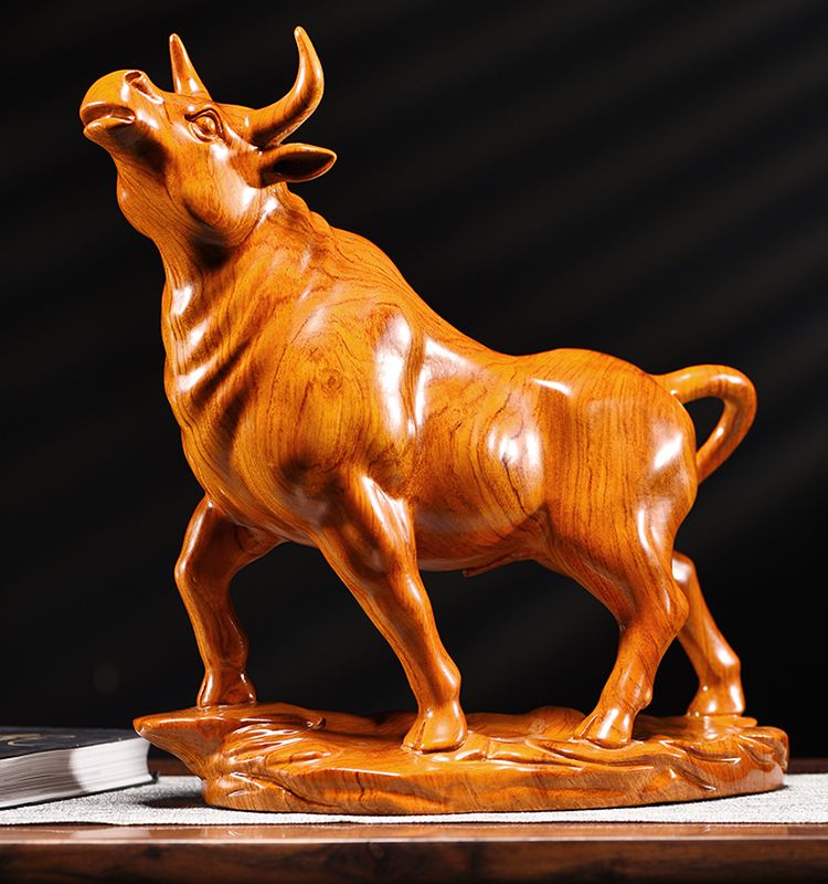 花梨木雕牛十二生肖牛气冲天实木牛摆件家居客厅玄关装饰工艺品