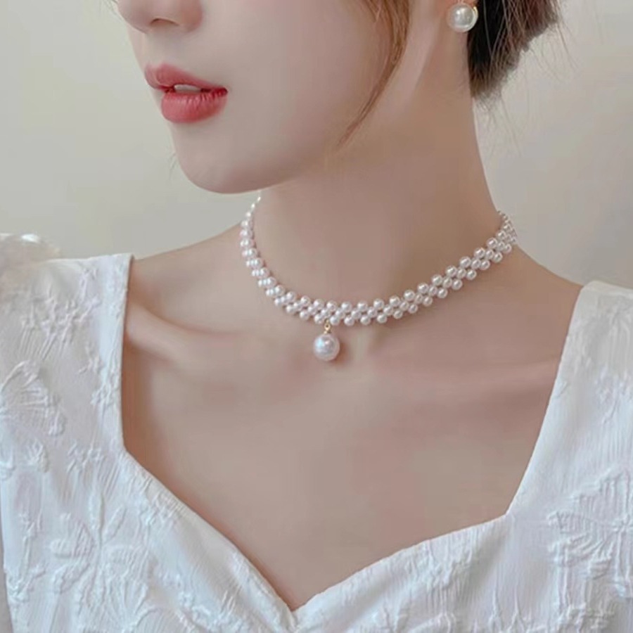 珍珠编织项链女轻奢时尚小众设计高级感锁骨链短款颈链配饰饰品潮