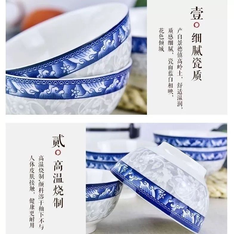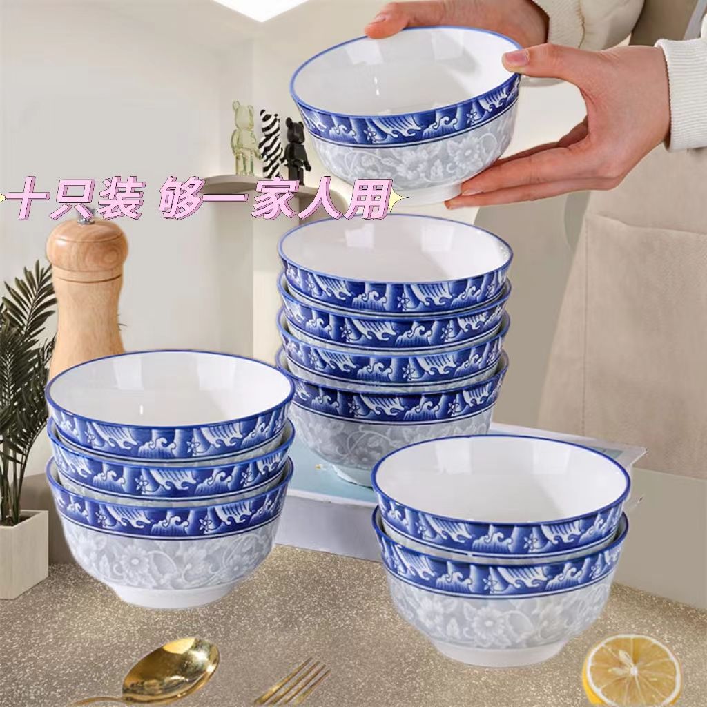 2024新款中式青花米饭碗套装 家用陶瓷复古风高颜值吃饭碗沙拉碗