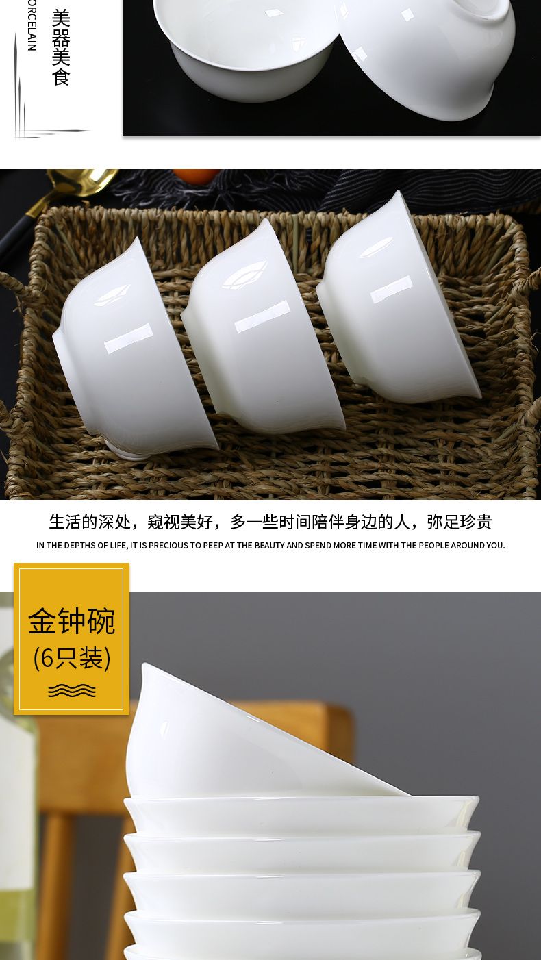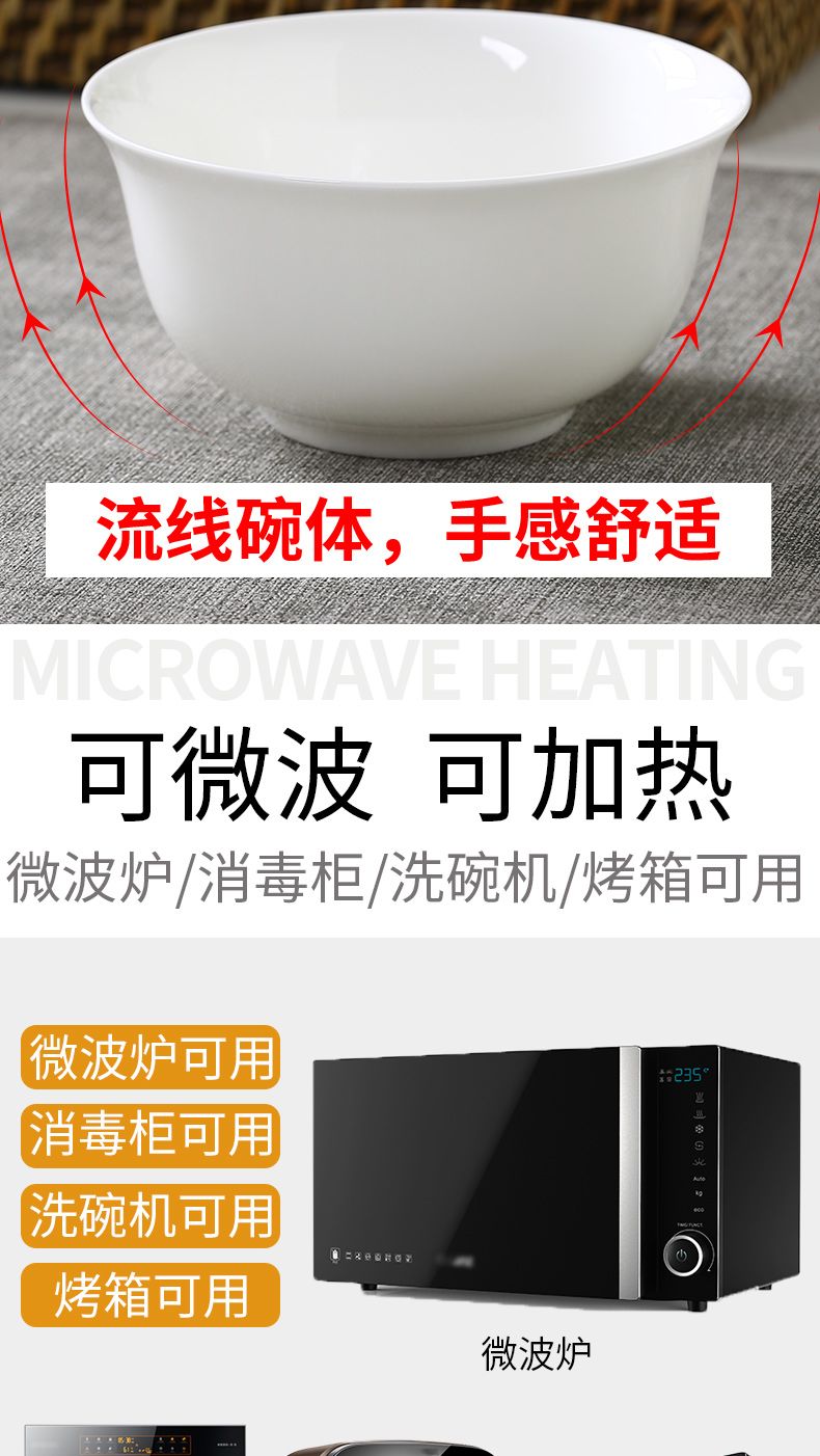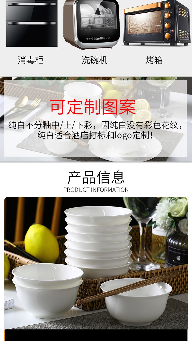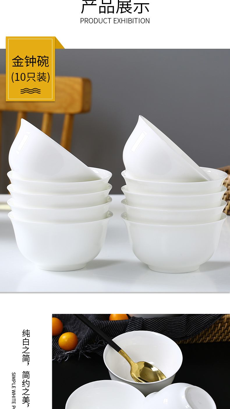 陶瓷金钟碗家用米饭碗酒店饭馆4.5英寸圆形纯白饭碗微波炉餐具