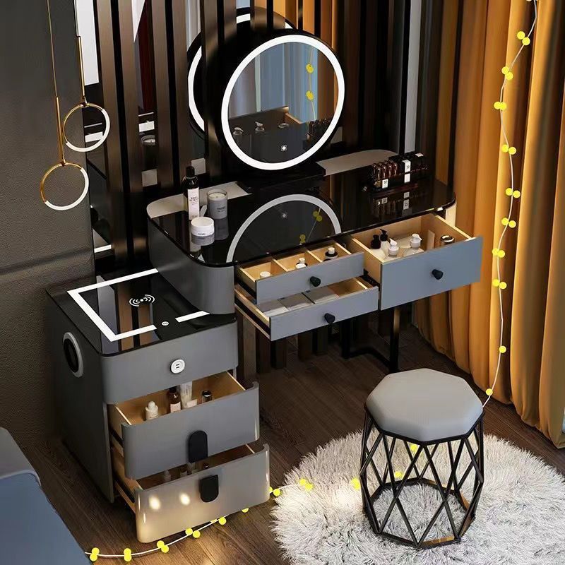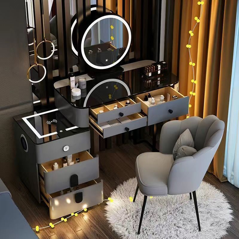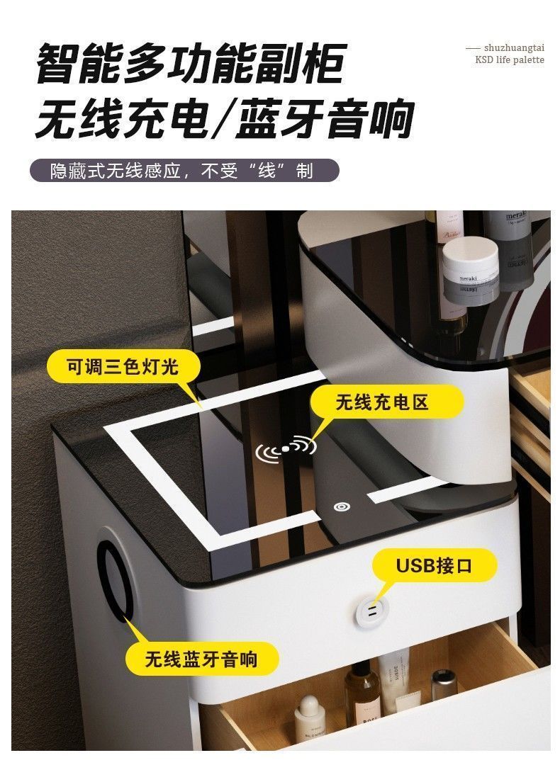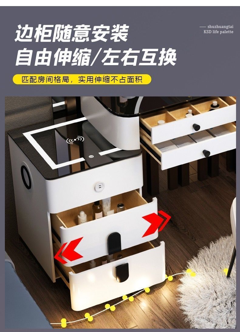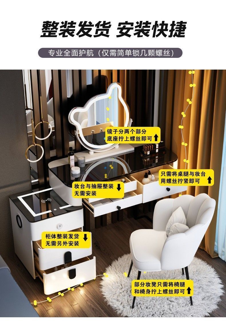轻奢风钢化玻璃多功能智能无线充电卧室梳妆台现代简约高感化妆桌