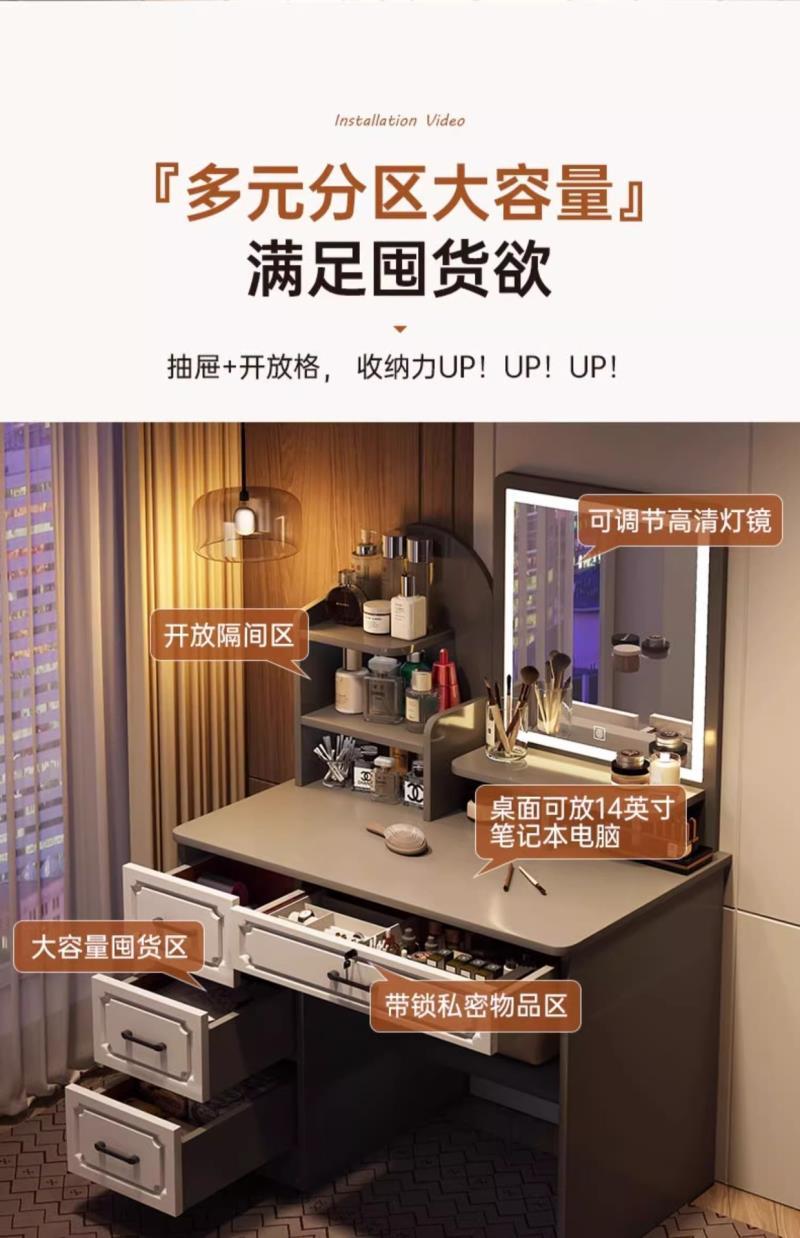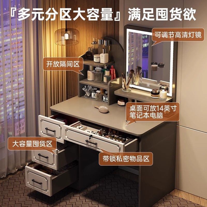 梳妆台新款轻奢小户型收纳高级一体化妆桌卧室简约现代斗柜化妆柜