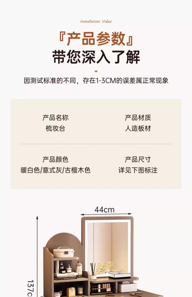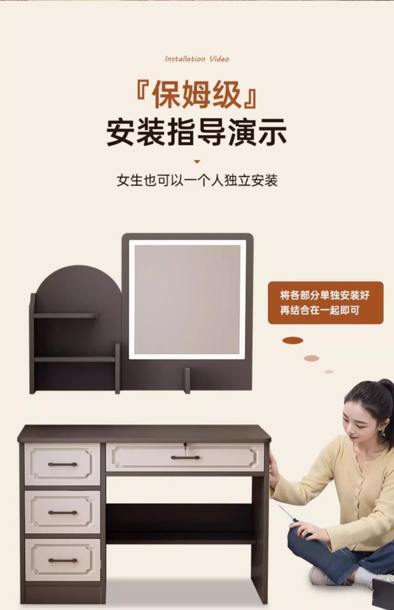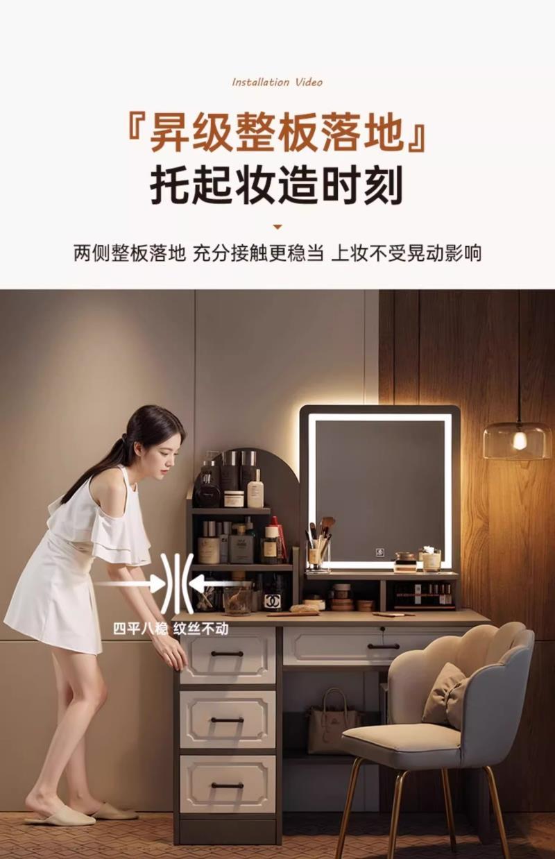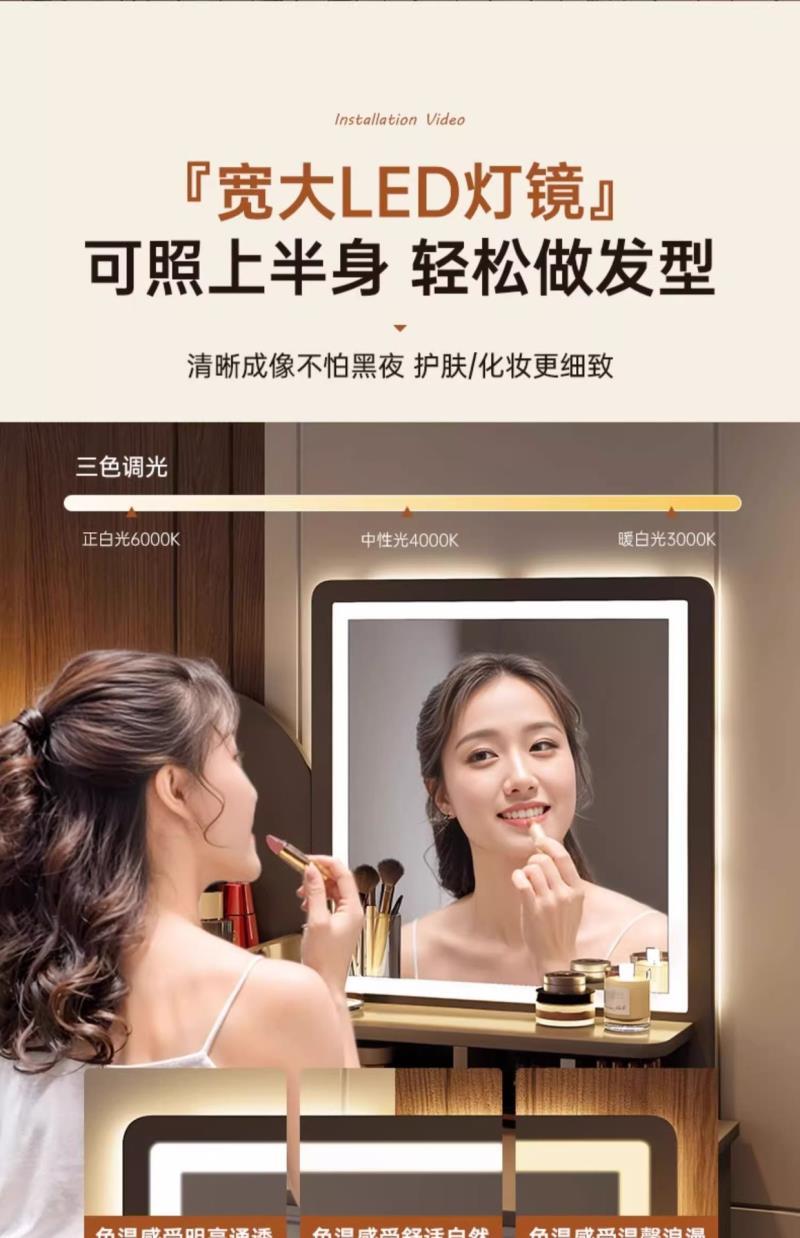 | warm white 80cm four-drawer square mirror with light + dressing stool(暖白色80cm四抽方镜带灯款+梳妆凳) | USD $34.33 | 999999 piece available |