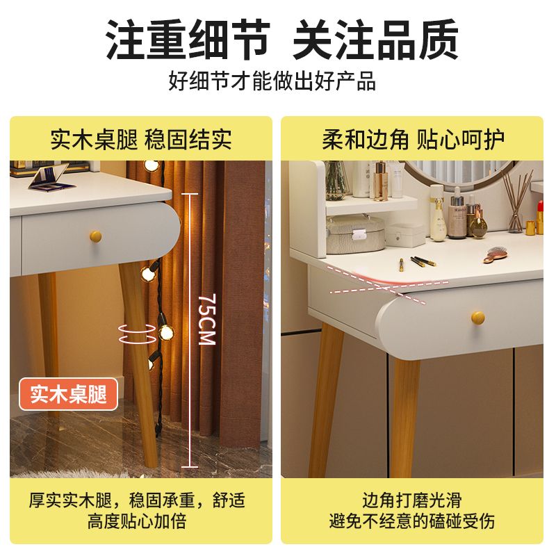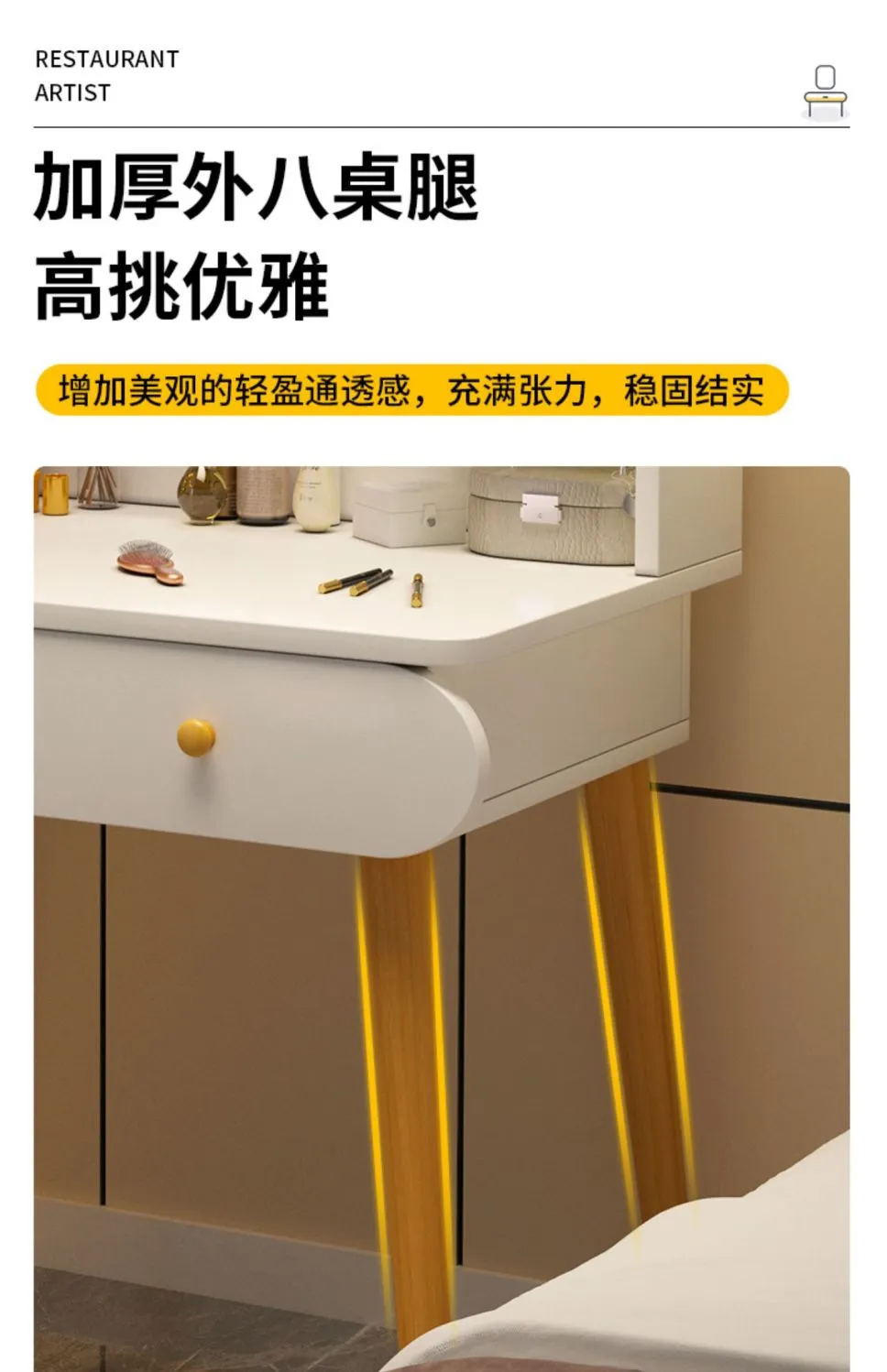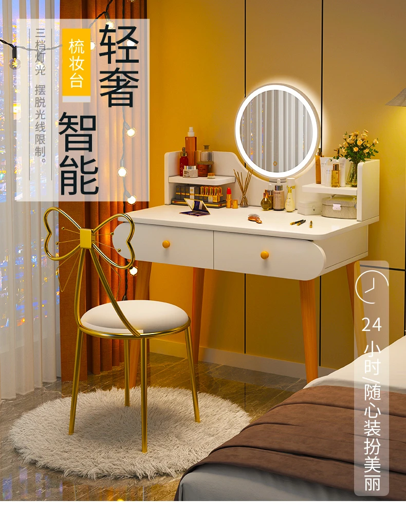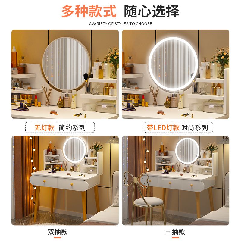 梳妆台卧室简约现代网红化妆桌带灯镜子一体新款小户型高级化妆台