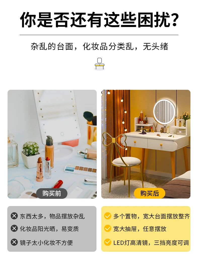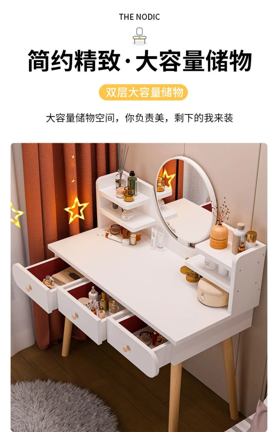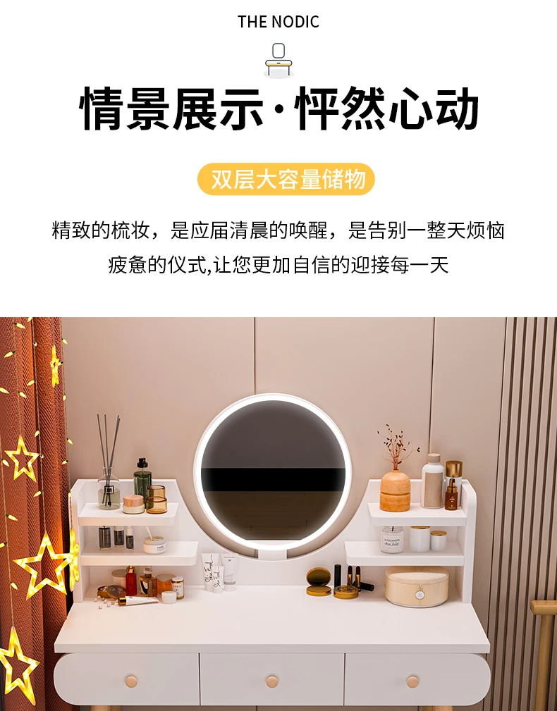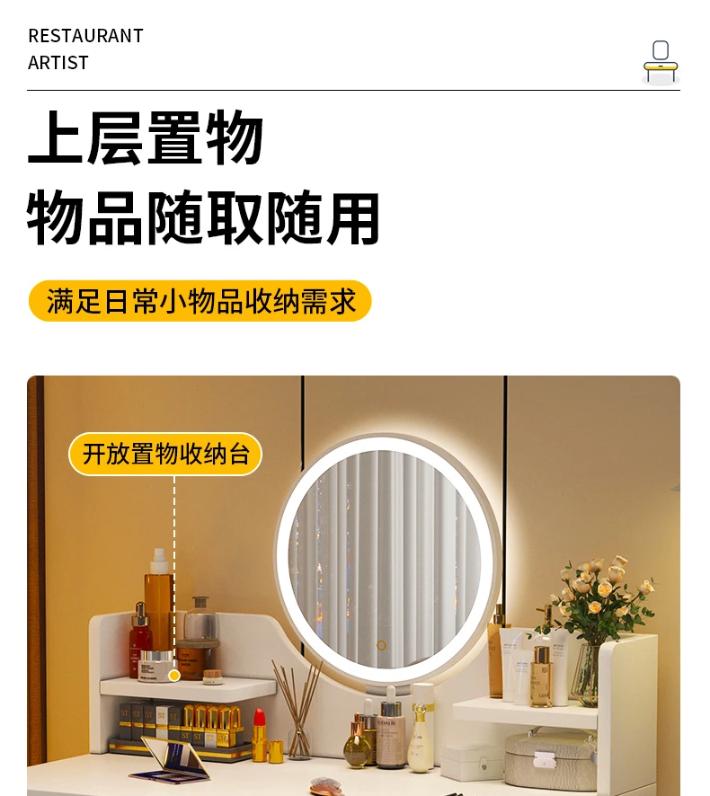 梳妆台卧室简约现代网红化妆桌带灯镜子一体新款小户型高级化妆台