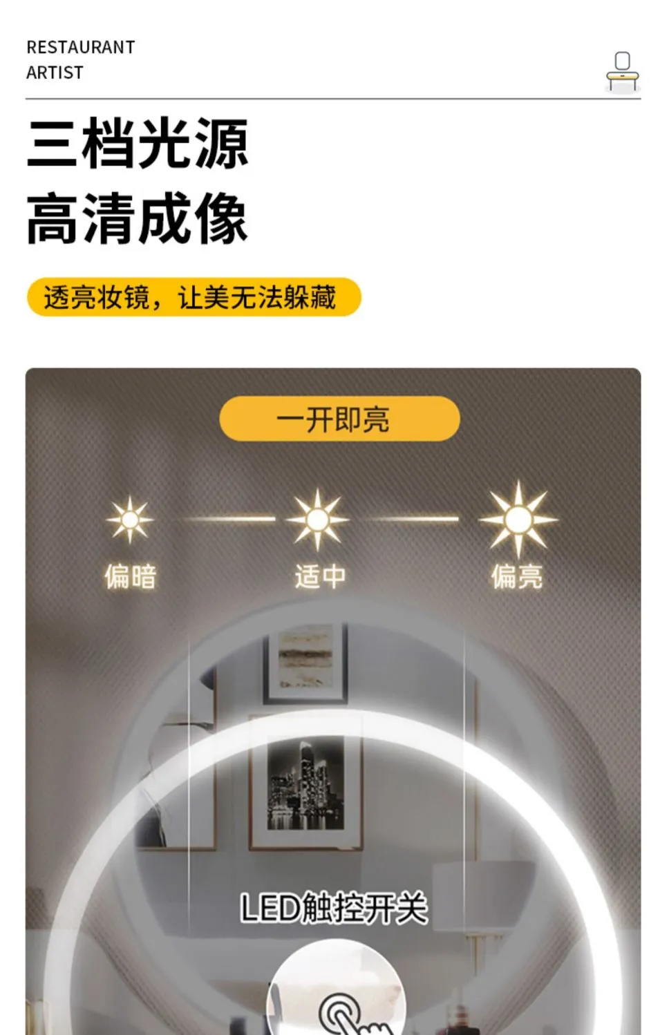 | smart light mirror [single layer and double pumping] warm white 80cm(智能灯镜【单层双抽】暖白80cm) | USD $21.45 | 999999 piece available |