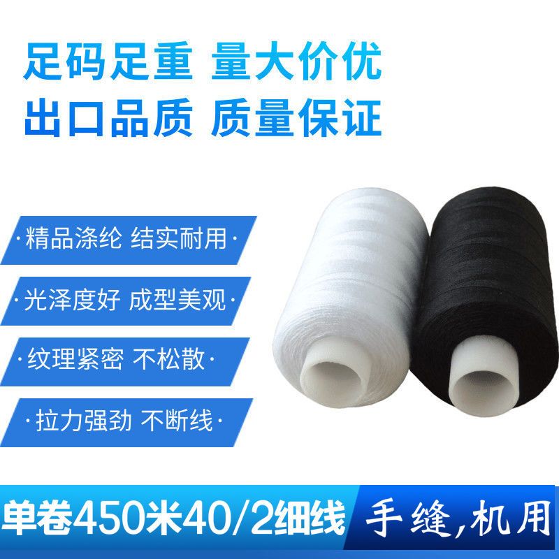 工厂直销500米黑白家用缝纫机线绣花缝衣缝被子小卷缝纫机线黑色