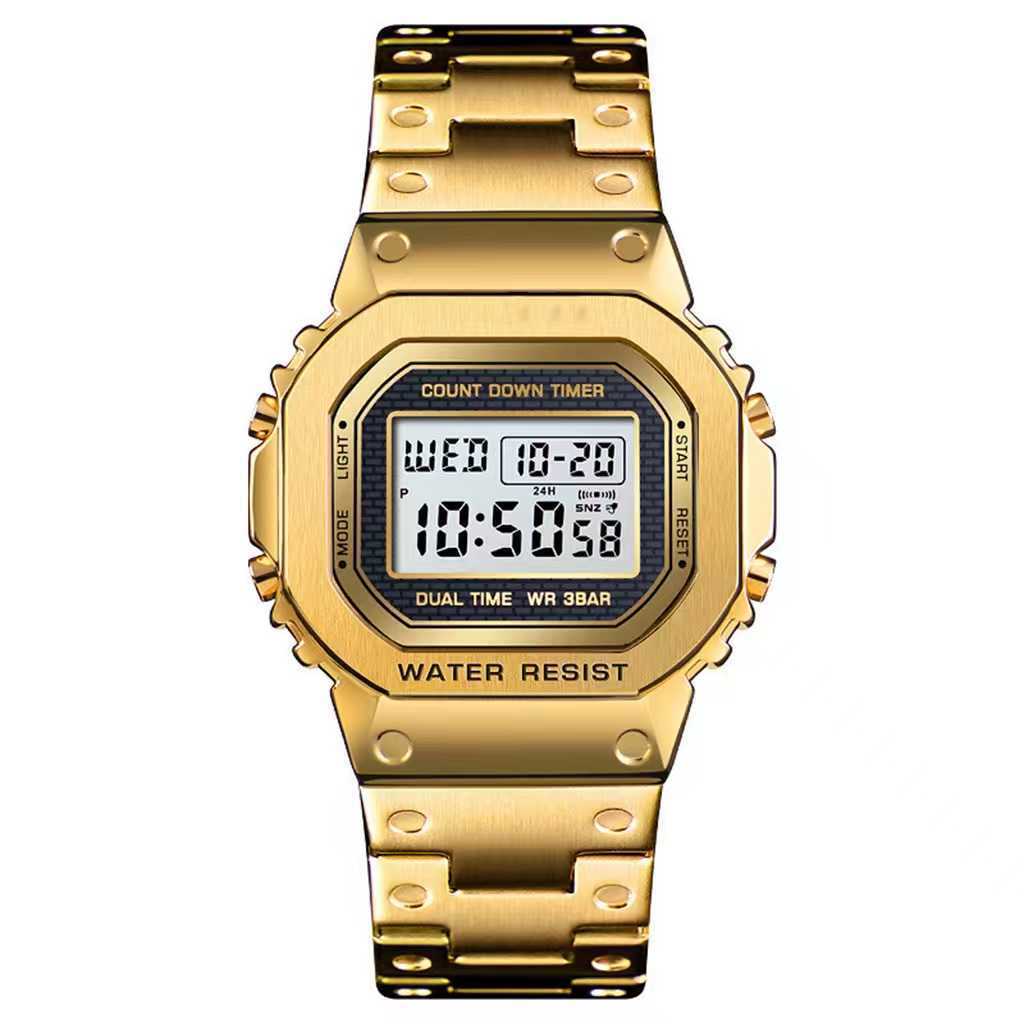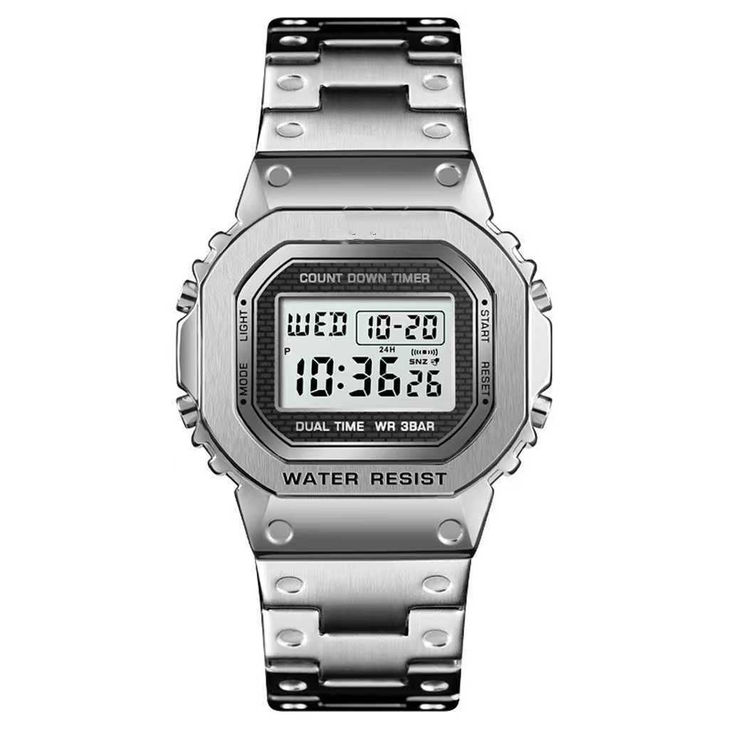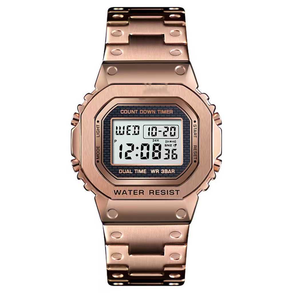 抖音网红同款简约复古钢带电子手表运动防水商务手表