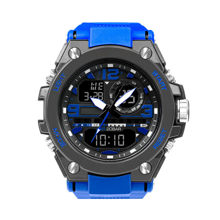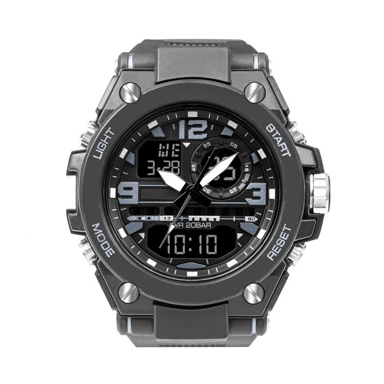 电子手表户外运动计时夜光防水青年手表指针式双显手表男士闹钟大