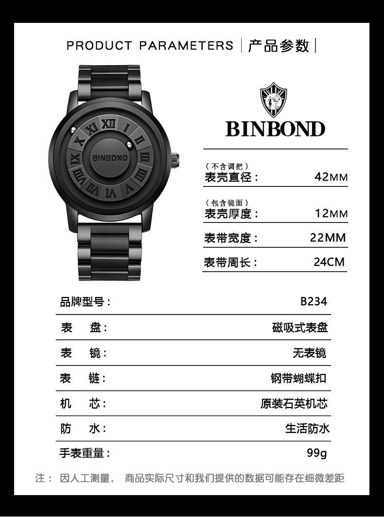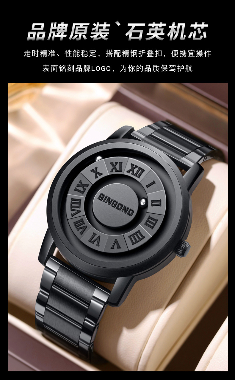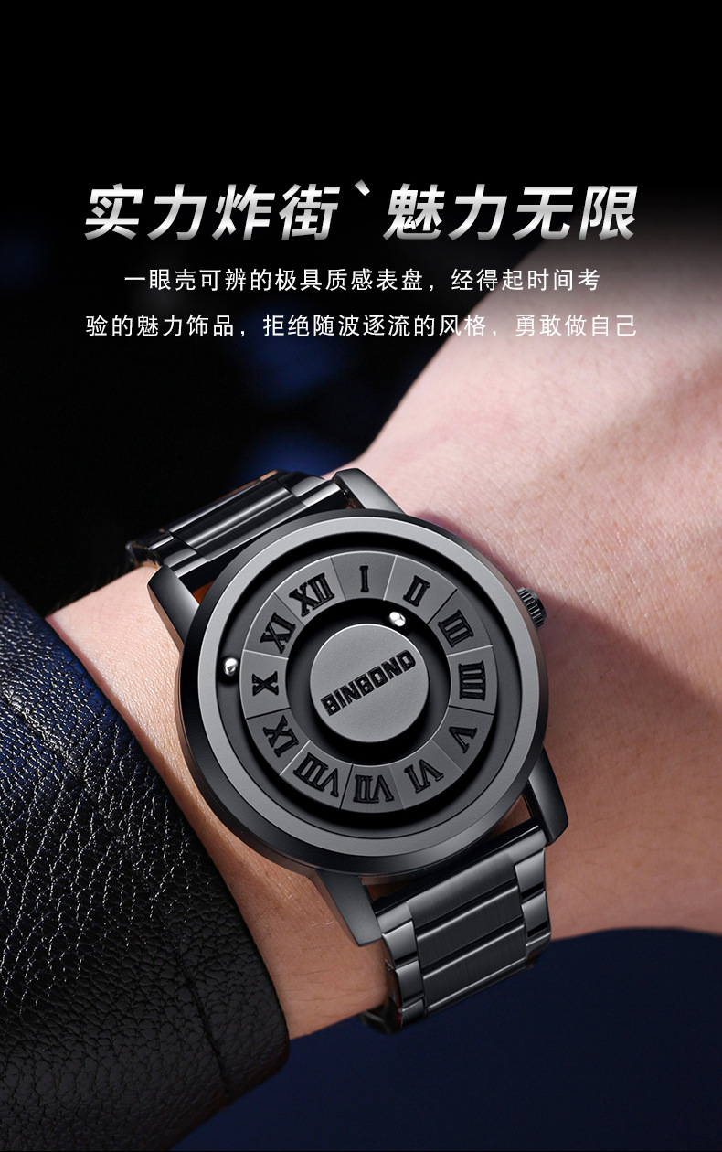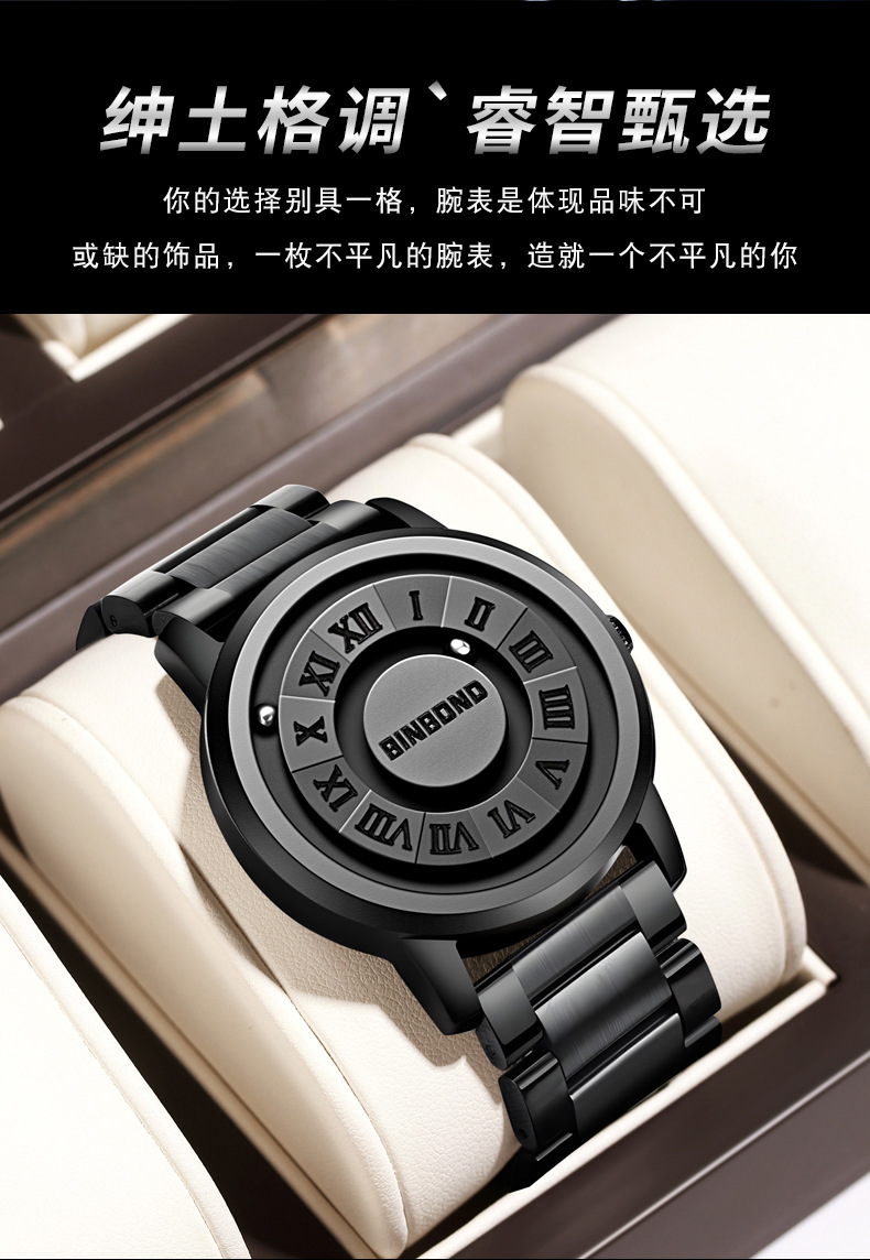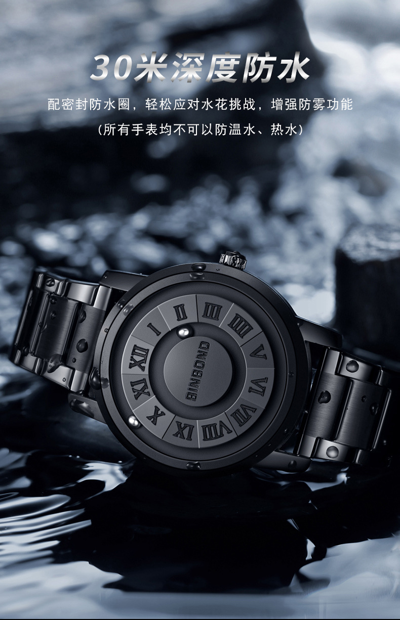 宾邦美国品牌黑科技手表男式新概念个性创意男士磁力悬浮防水男表