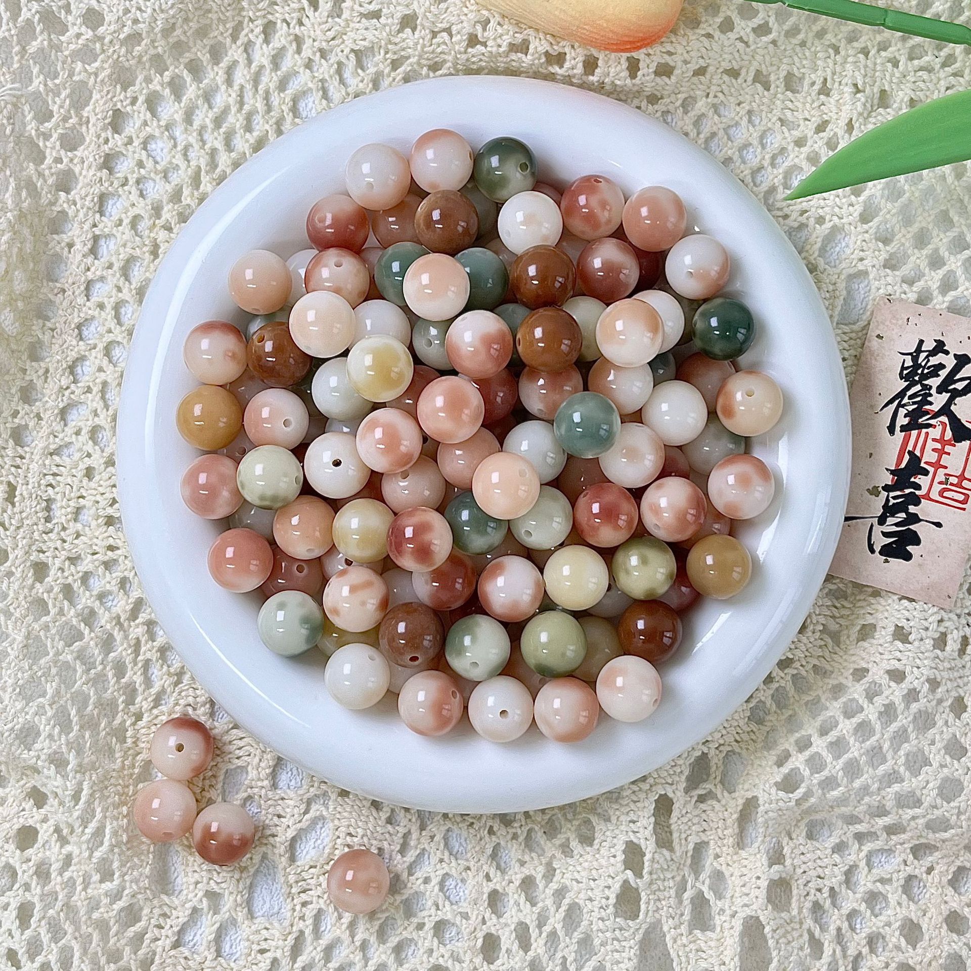 天然粉多宝花皮菩提根手串散珠diy佛珠念珠文玩精品高抛配件批发