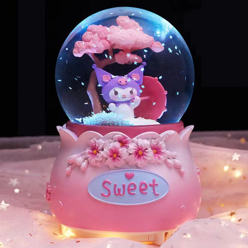 美乐蒂水晶球女孩公主风库洛米水晶球旋转八音盒夜光发光音乐盒