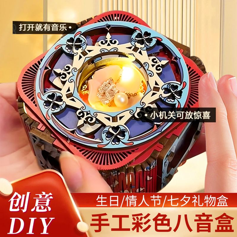 表白神器送女朋友闺蜜机关音乐盒DIY木质机械八音盒礼物立体拼图