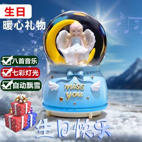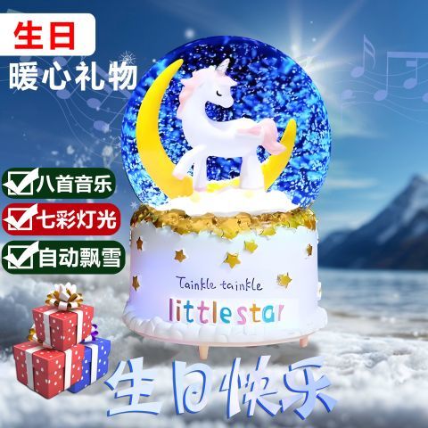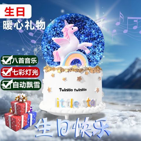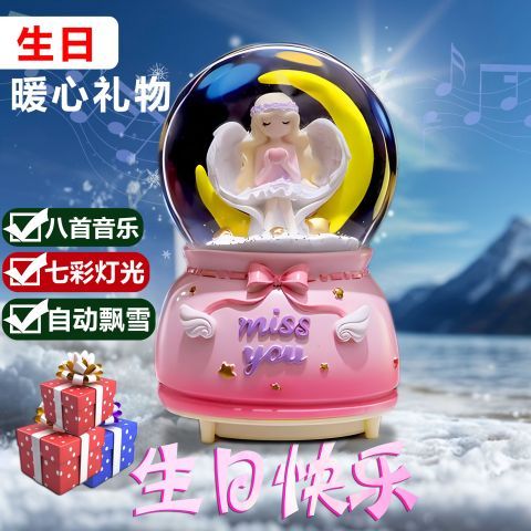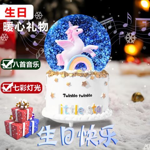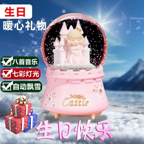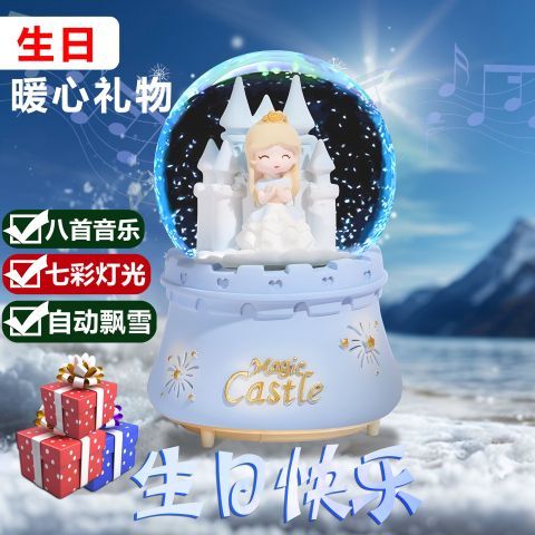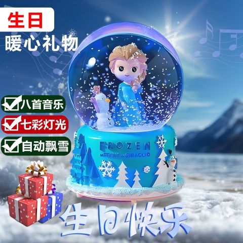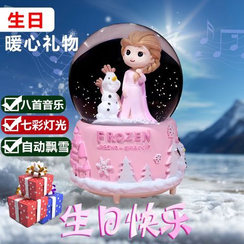 艾莎公主水晶球音乐盒小女孩八音盒发光智能儿童奇缘生日礼物透明