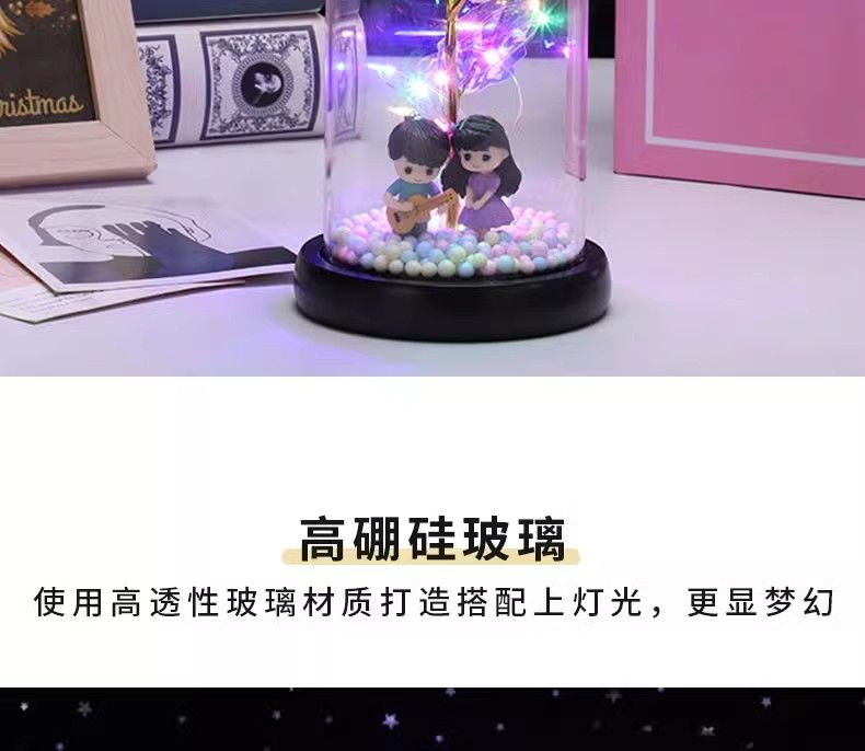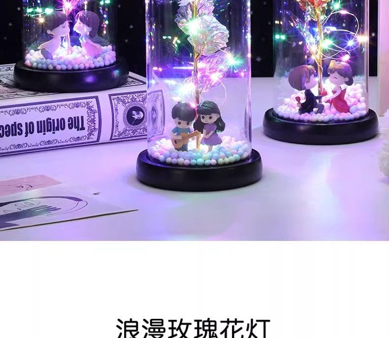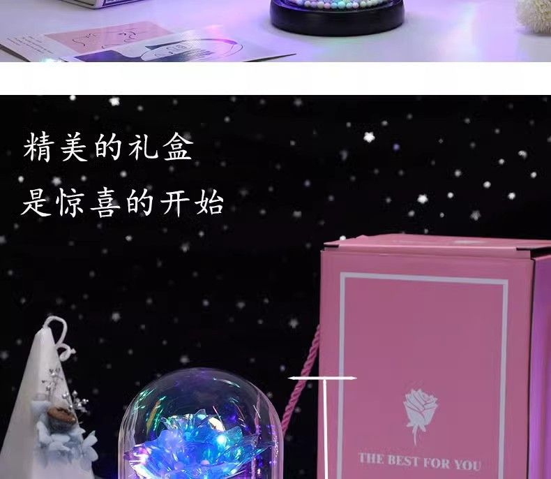 永生花玫瑰花生日礼物送女生女友老婆高级浪漫花束带灯情人节礼物