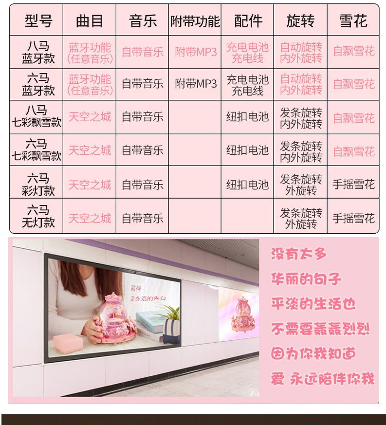 | gift luxury 16 eight horses inside and outside rotating colored lights fairy tale(礼豪华款16八马内外旋转彩灯童话) | USD $24.03 | 999999 piece available |