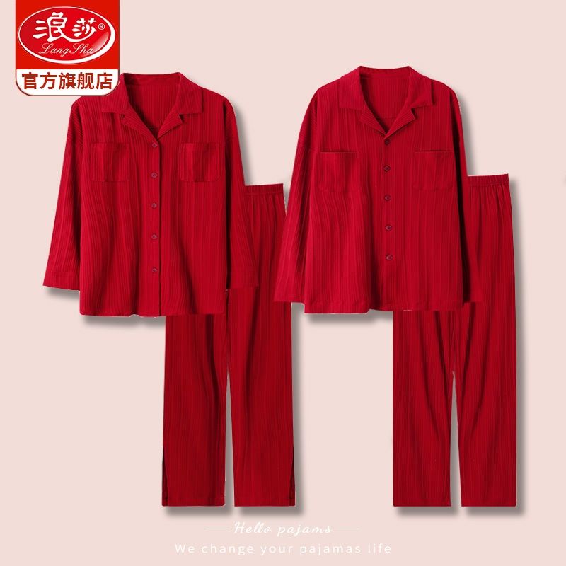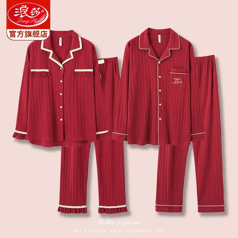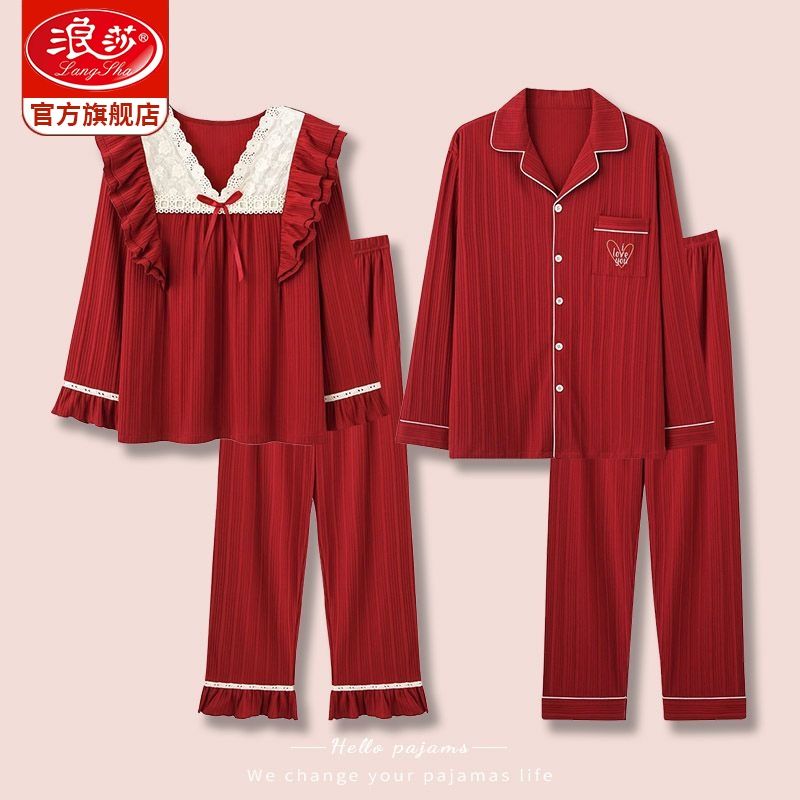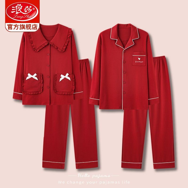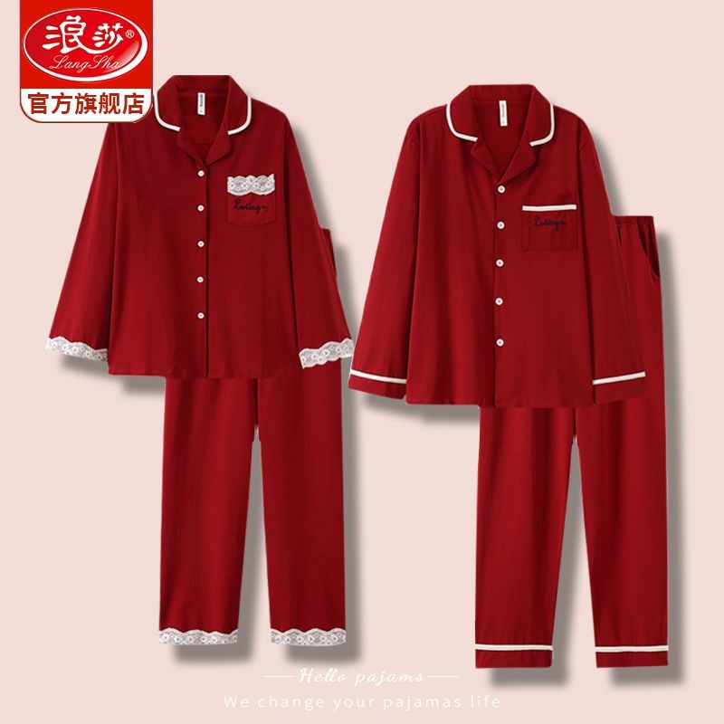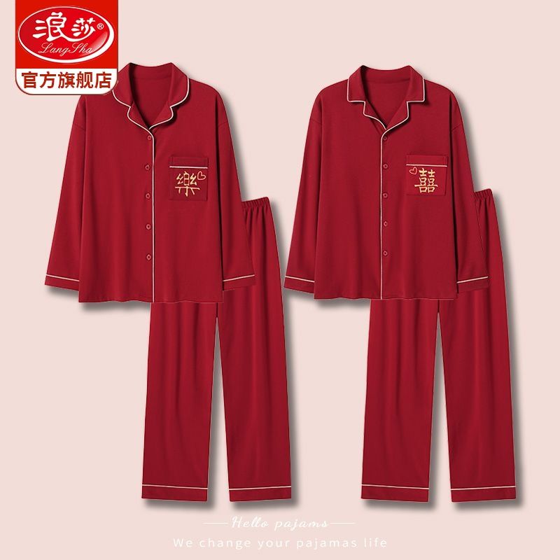 浪莎结婚睡衣情侣春秋款红色纯棉新婚一男一女本命年家居服套装冬