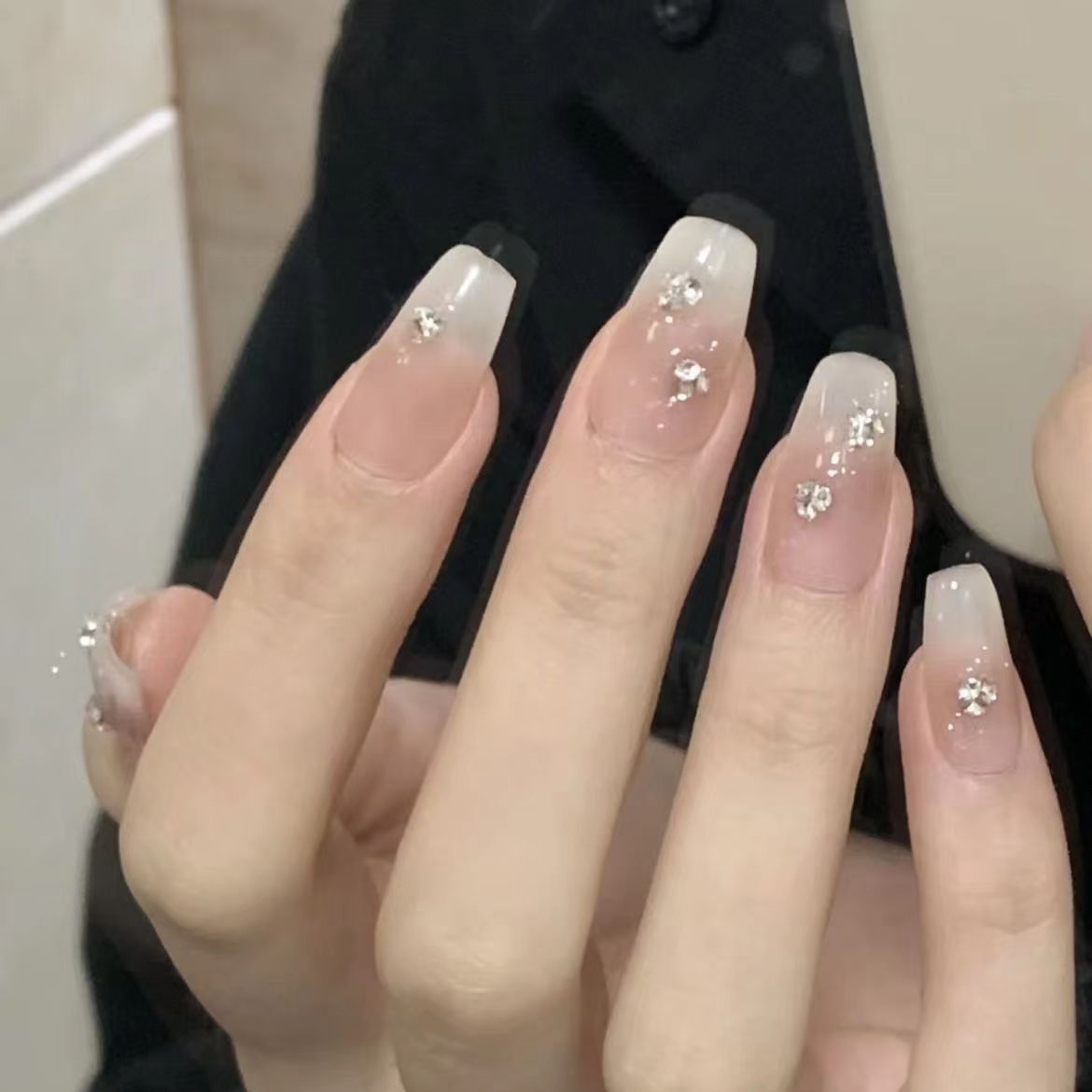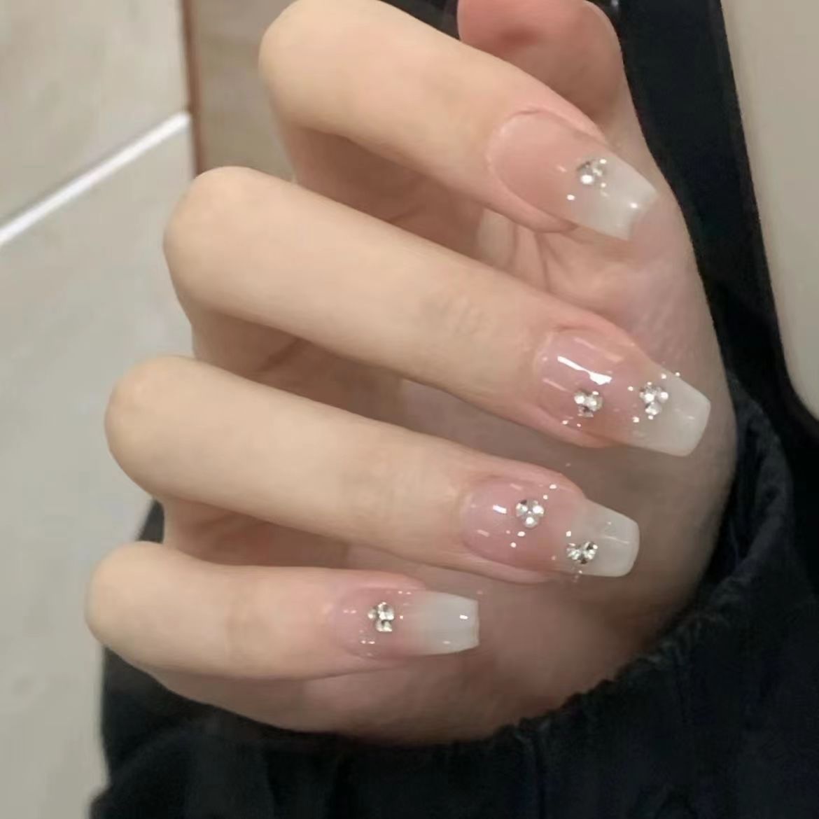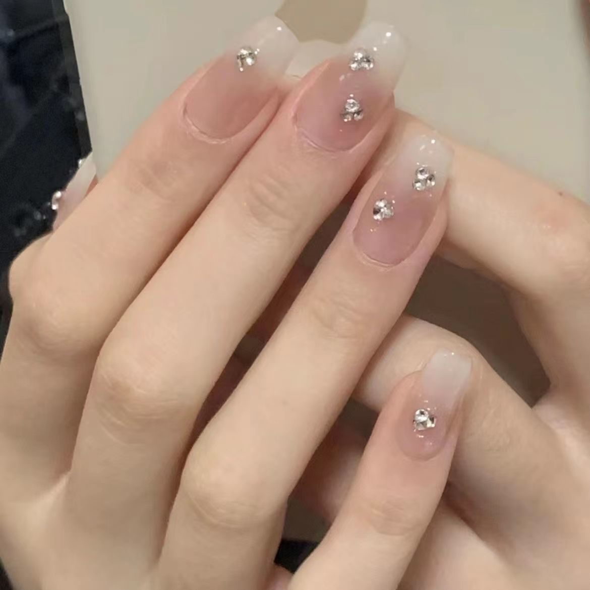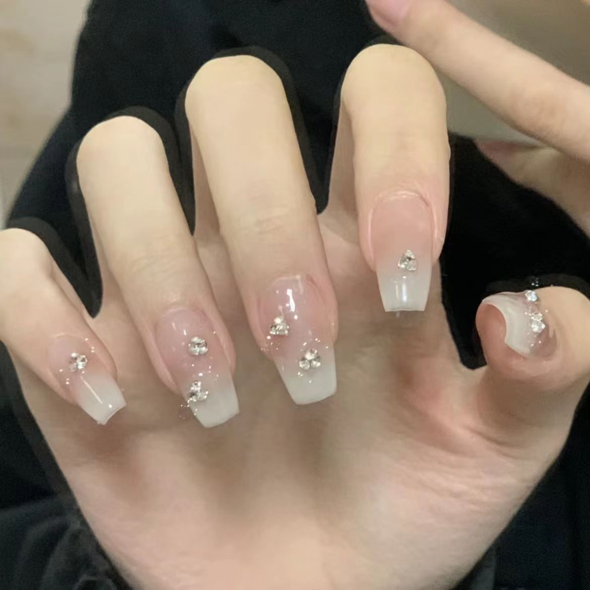纯手工厚乳拿铁穿戴甲乳白渐变温柔ins显白小红书爆款纯欲风美甲