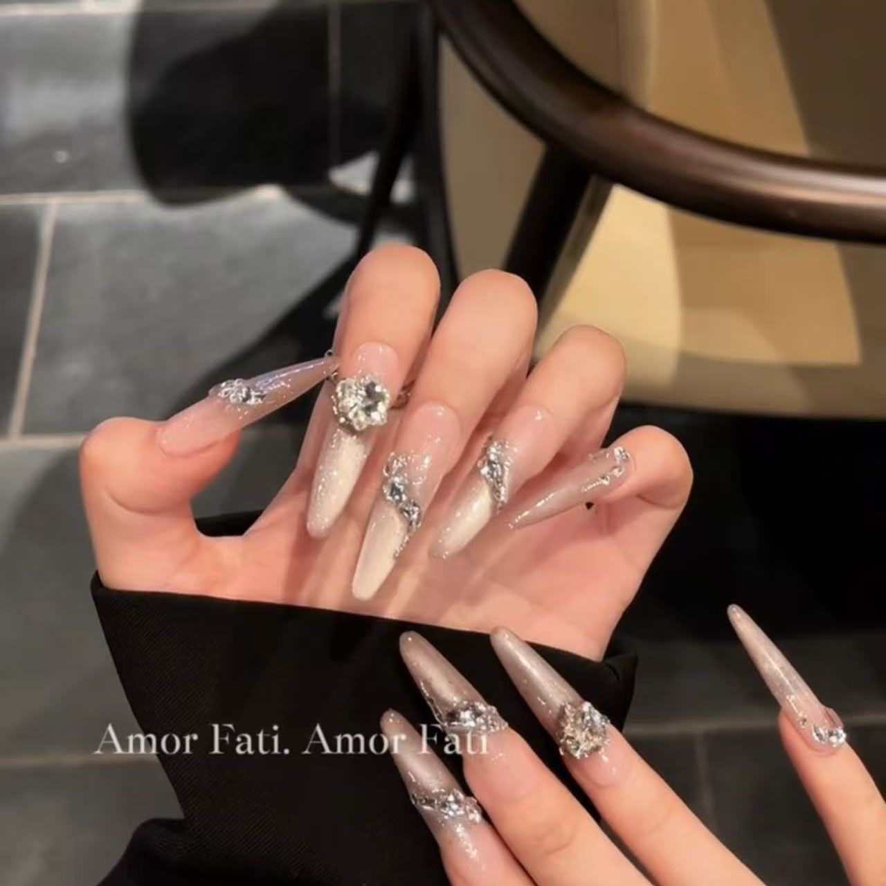 纯手工富家千金爆闪渐变猫眼高级气质美甲穿戴显白氛围美甲穿戴甲