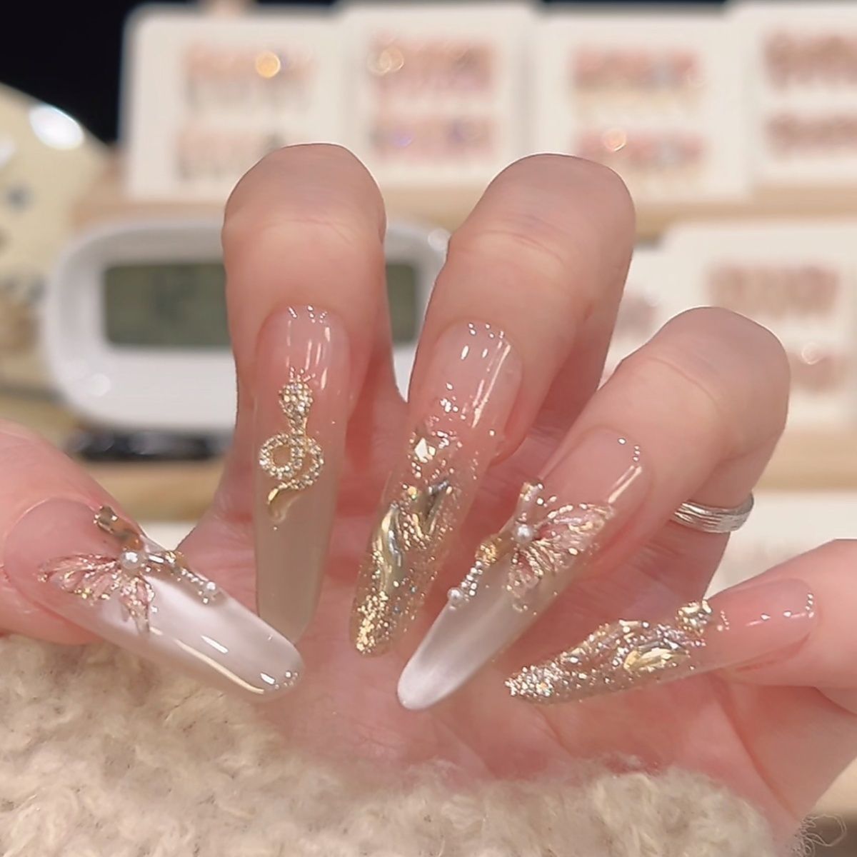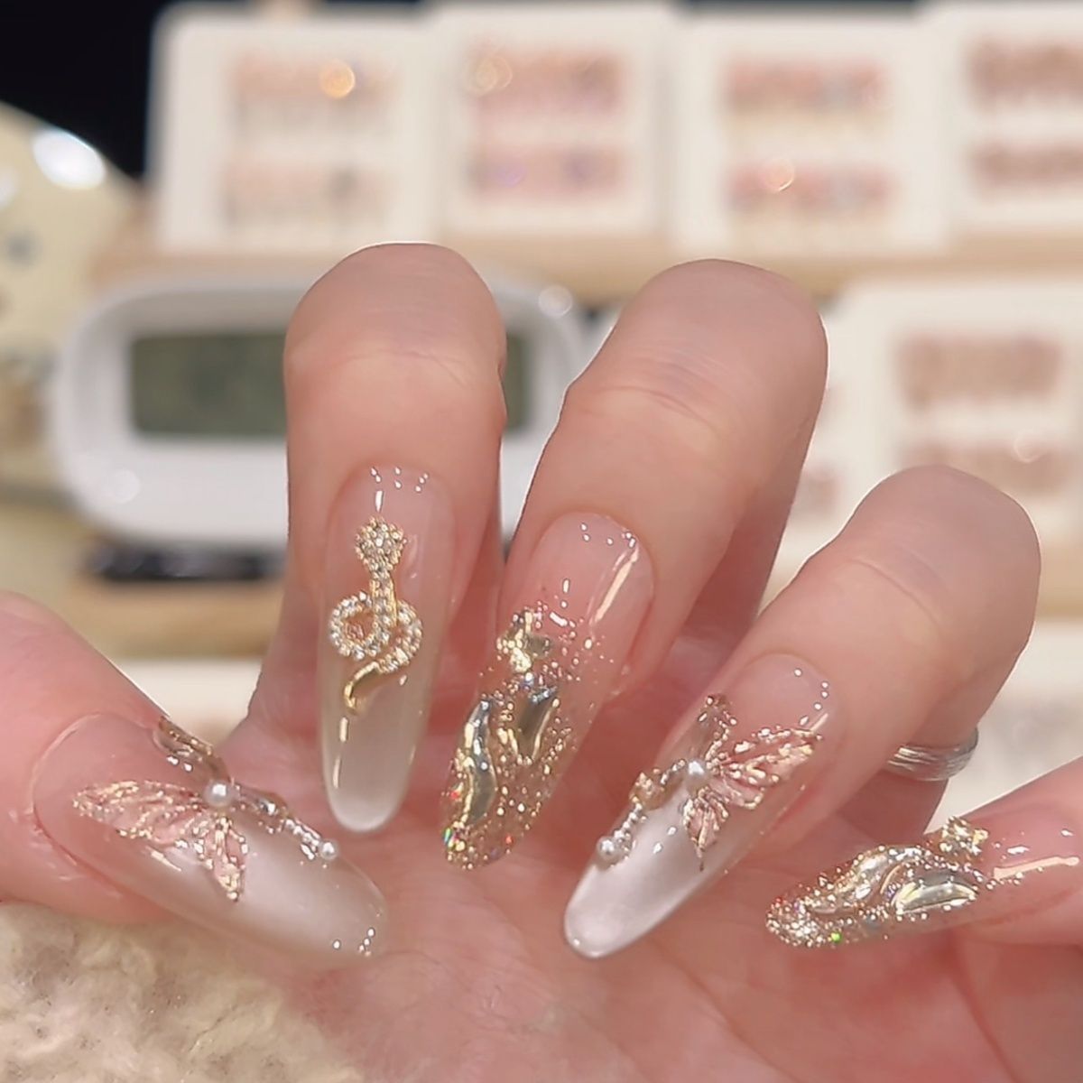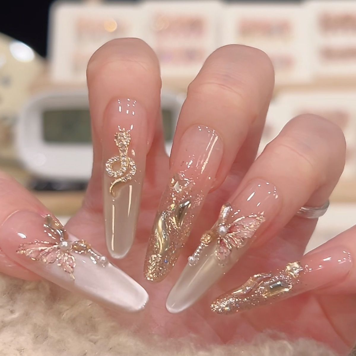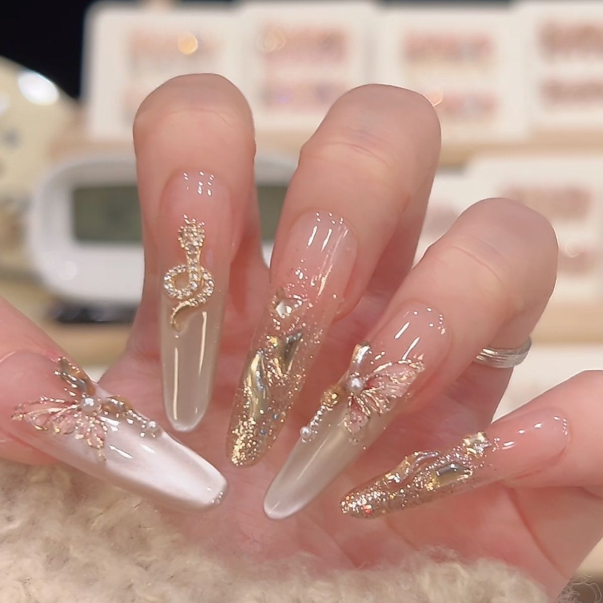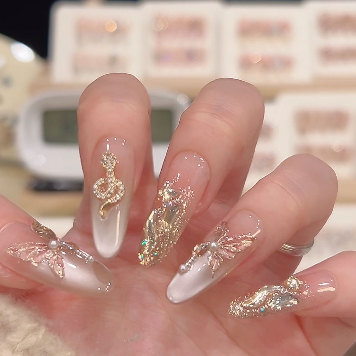 蝴蝶金蛇高级显贵氛围新年战甲纯手工猫眼气质定制美甲穿戴显白