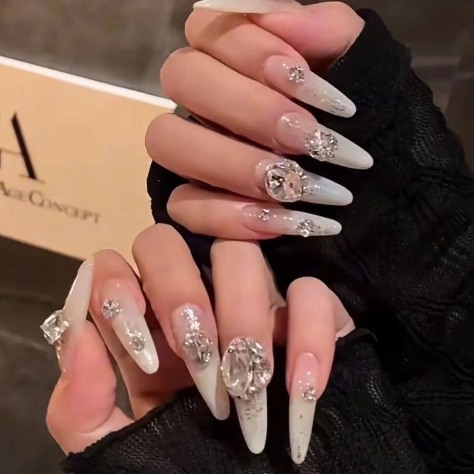 纯手工冬日穿戴甲辣妹风裸色渐变气质高级轻奢鸽子显白爆闪美甲