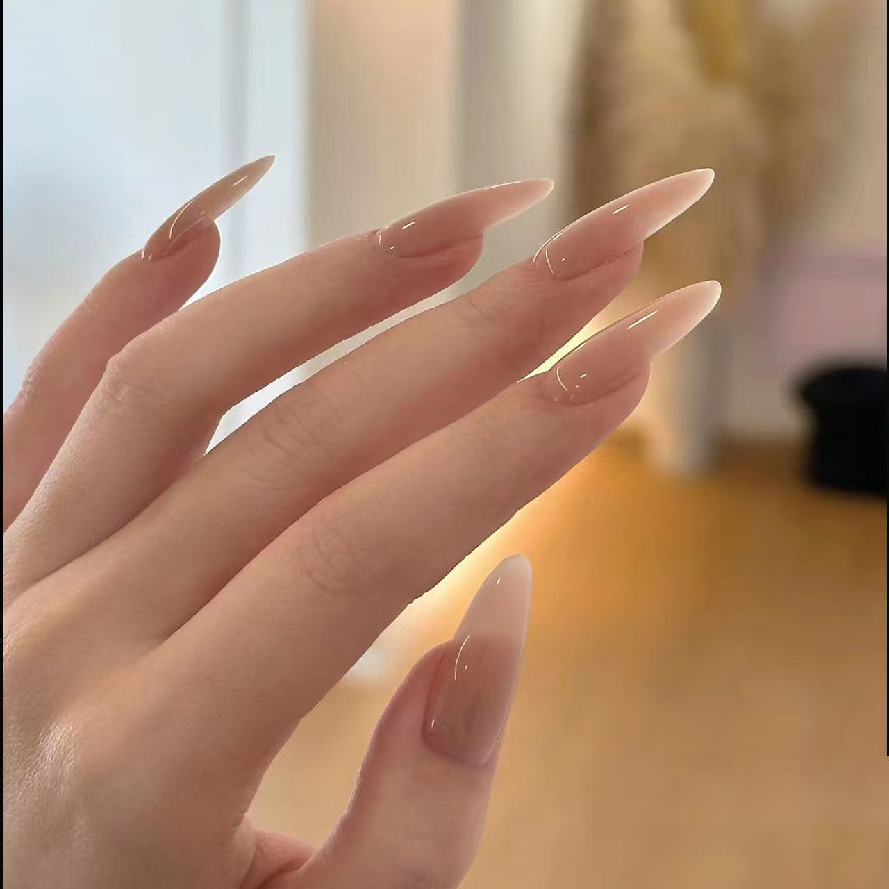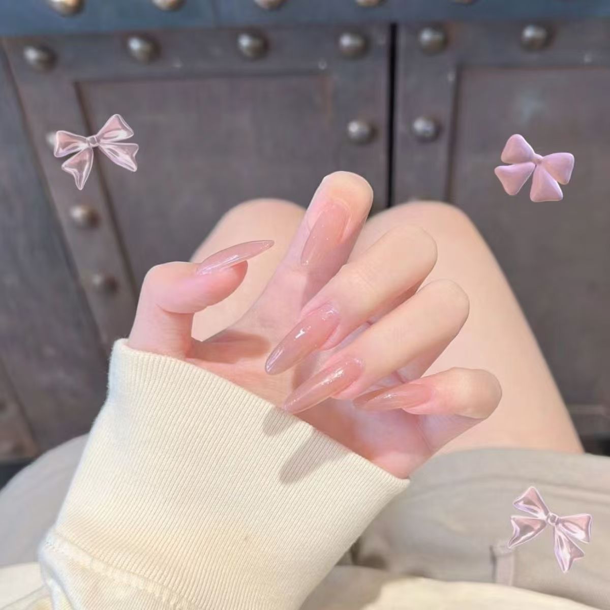 纯手工穿戴甲可拆卸秋冬新款粉色渐变高级美甲贴片粉嫩纯欲假指甲