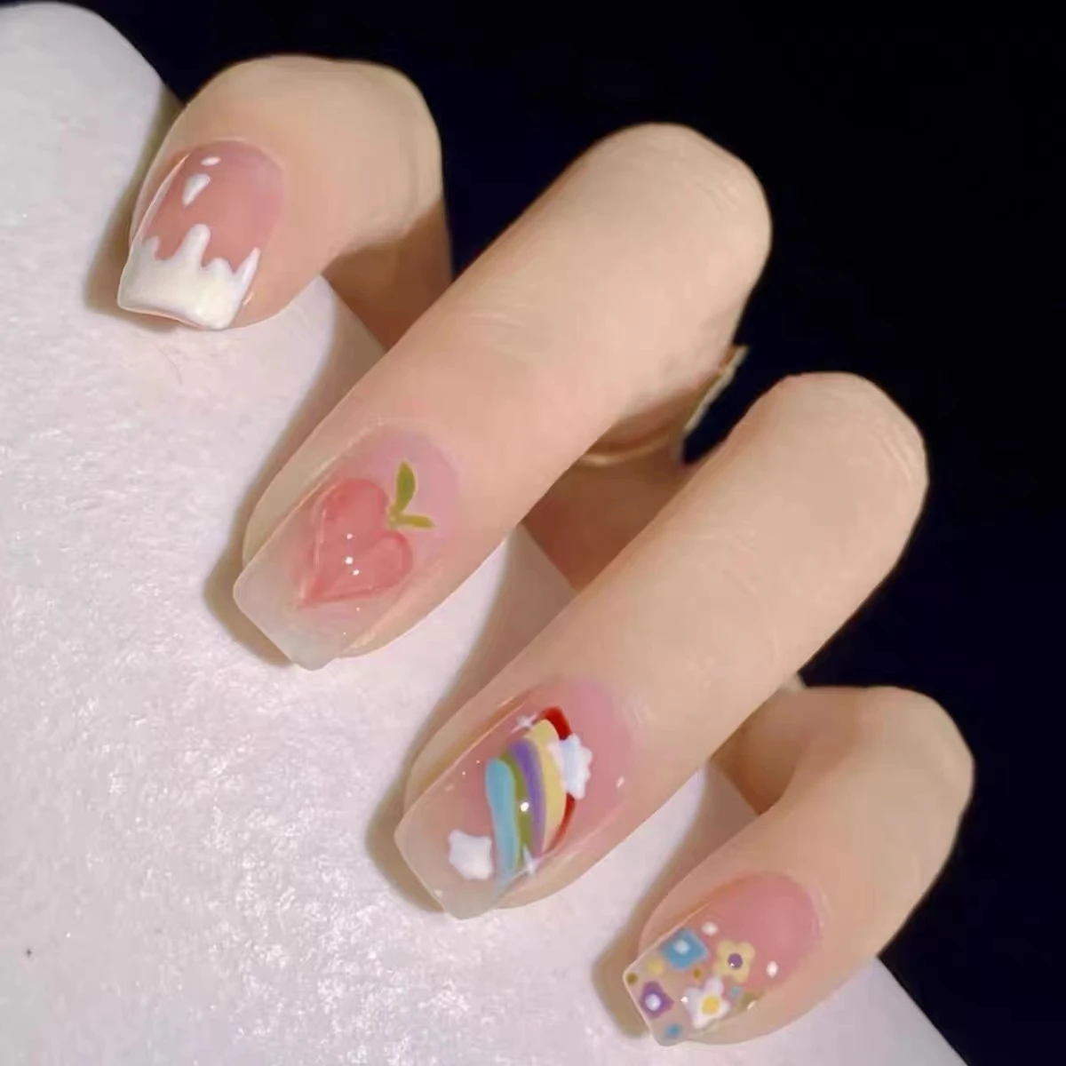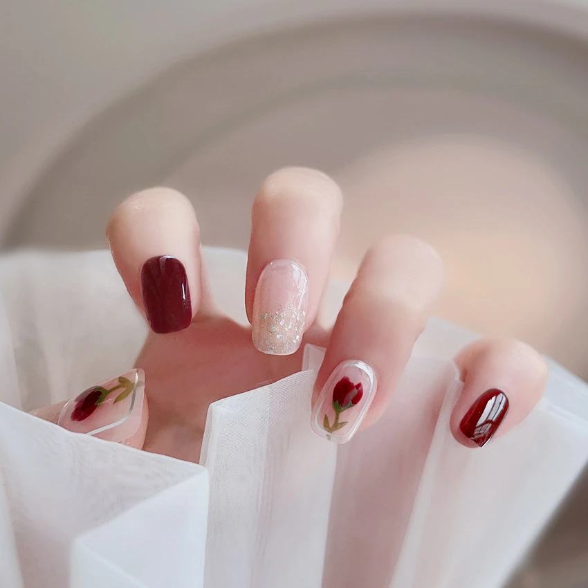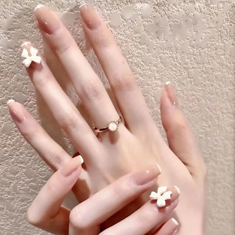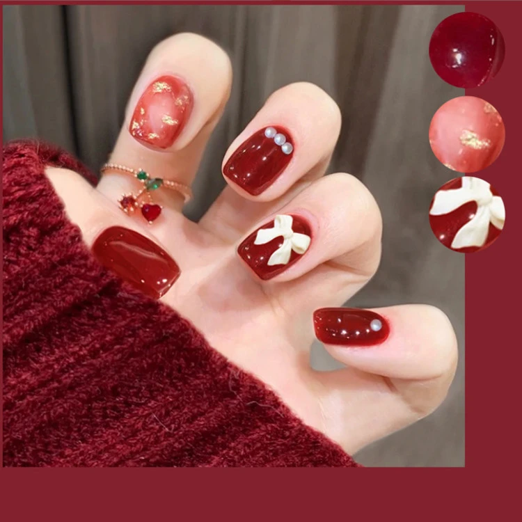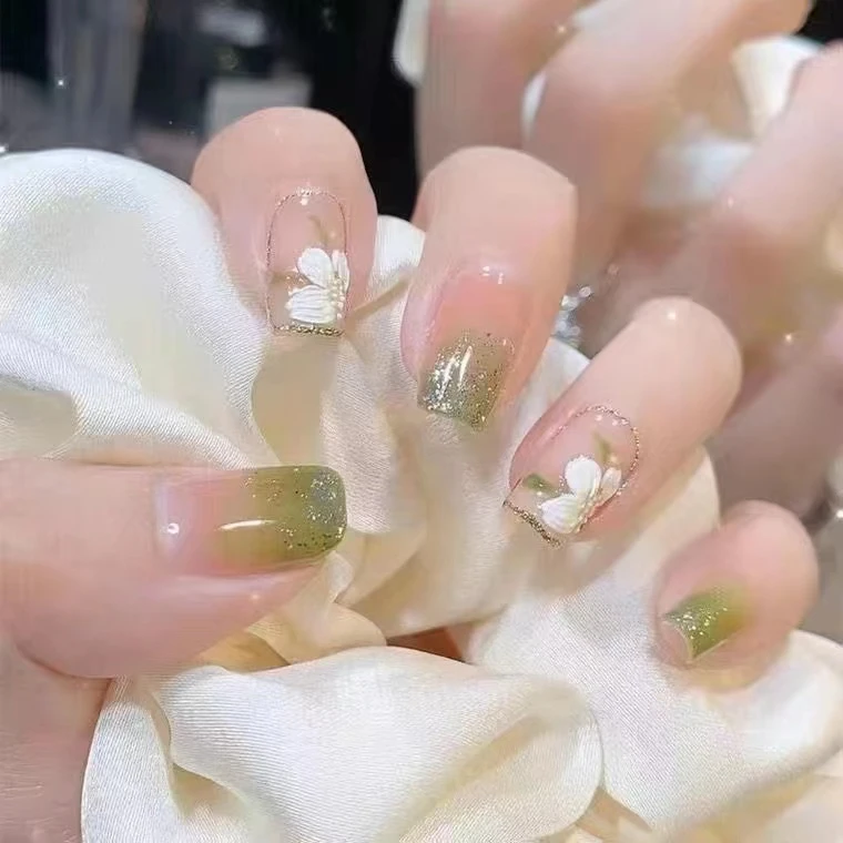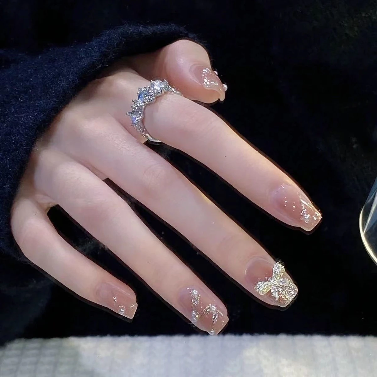 美甲穿戴甲贴片可拆卸山茶花极光钻显白裸色高级感甲片美甲指甲贴