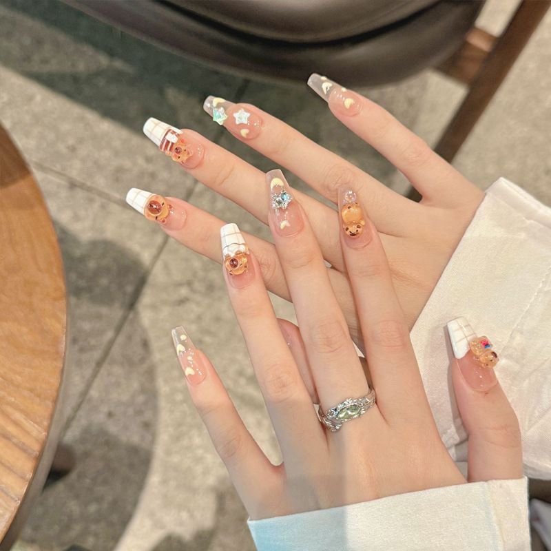 爆款卡皮巴拉可爱风穿戴甲豚鼠卡通美甲长款学生指甲穿戴美甲新款