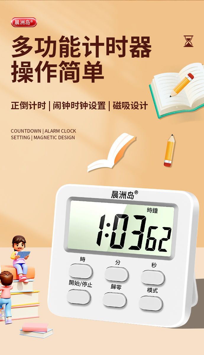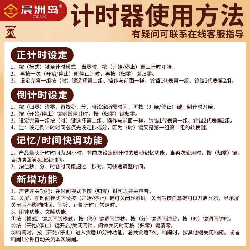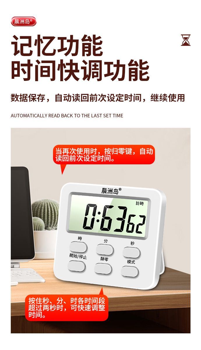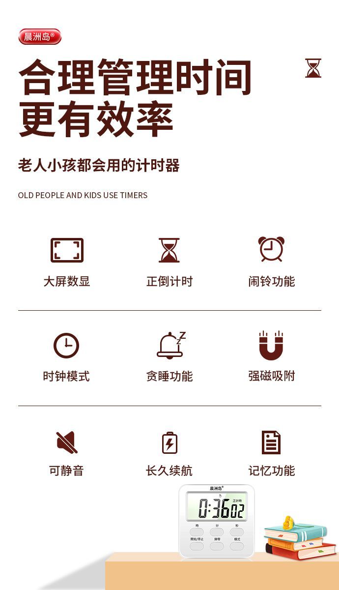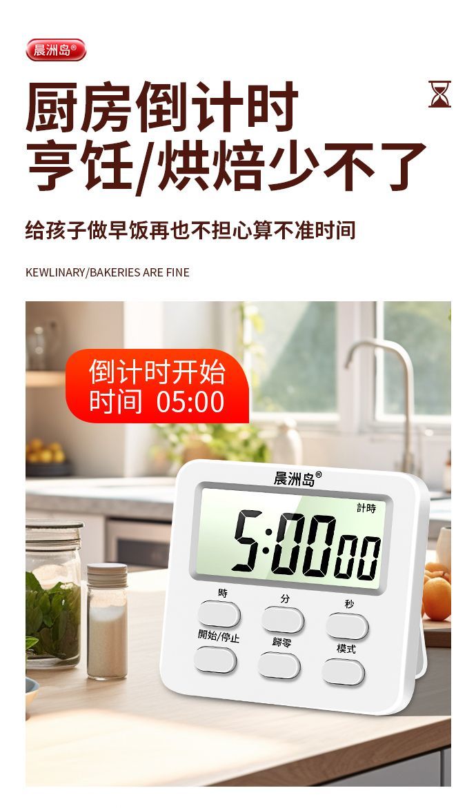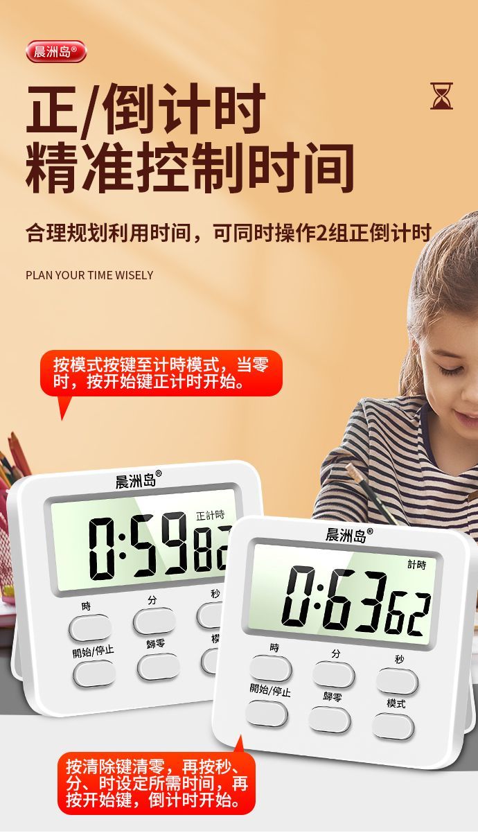 晨洲岛正品计时器厨房烹饪提醒器学生闹钟作业考研自律定时器园艺
